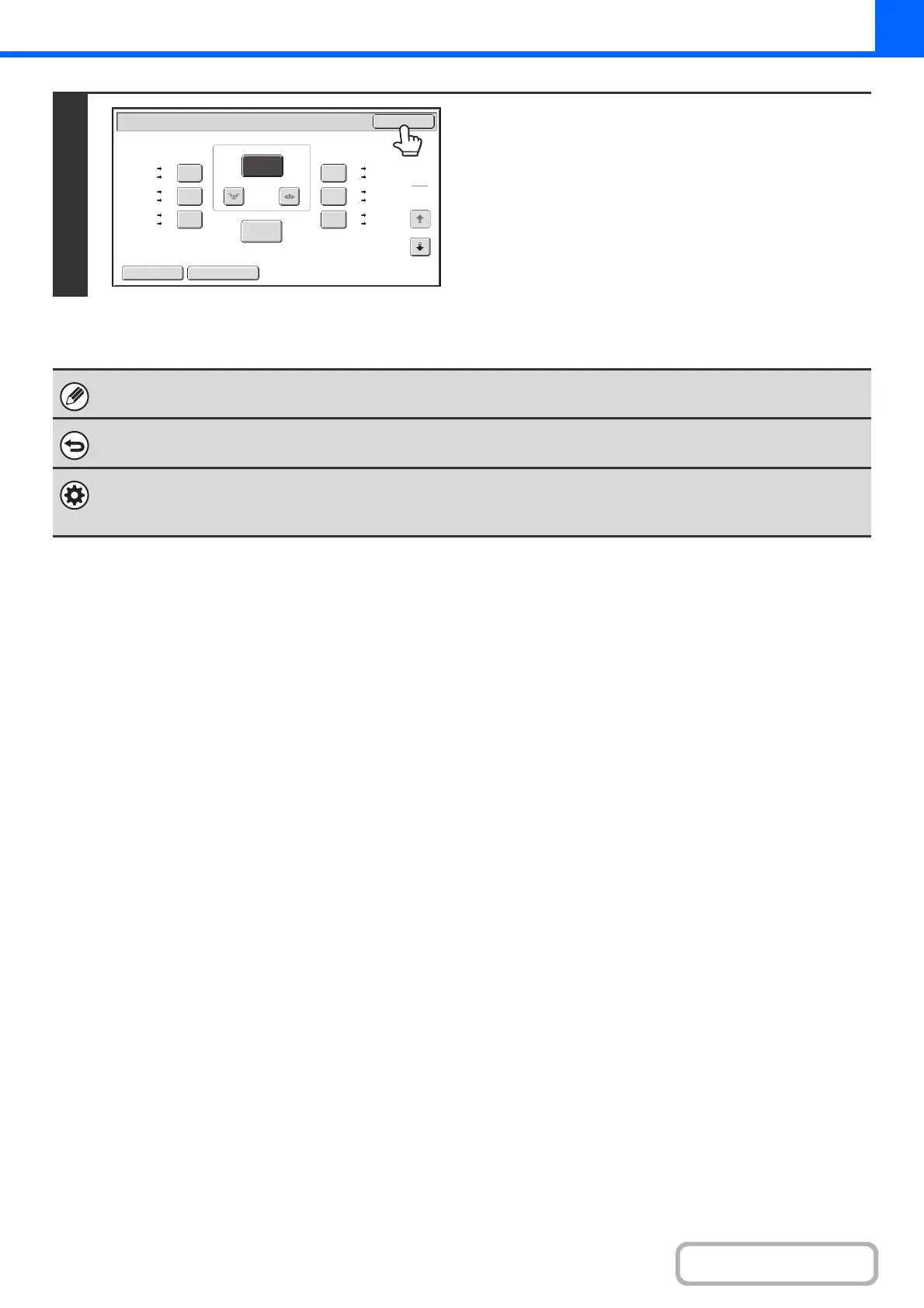 To return the ratio setting to 100%, touch the [Copy Ratio] key to display the ratio menu and then touch the [100%] key.