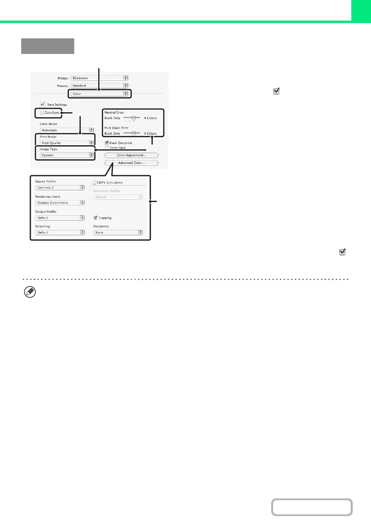 • ColorSync checkbox: Colour management method in a Macintosh environment