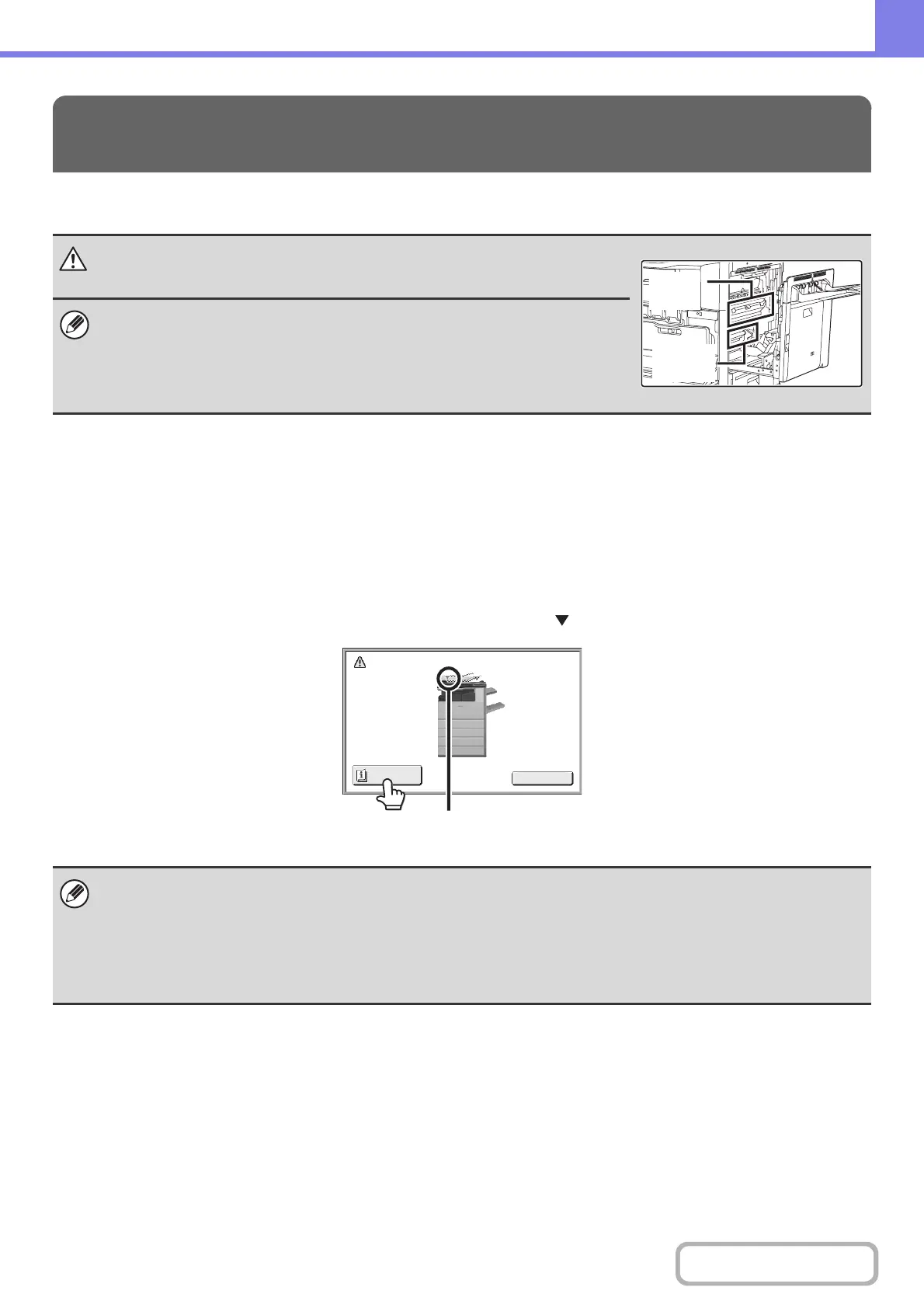 This section explains what to do when a paper misfeed occurs in the machine.