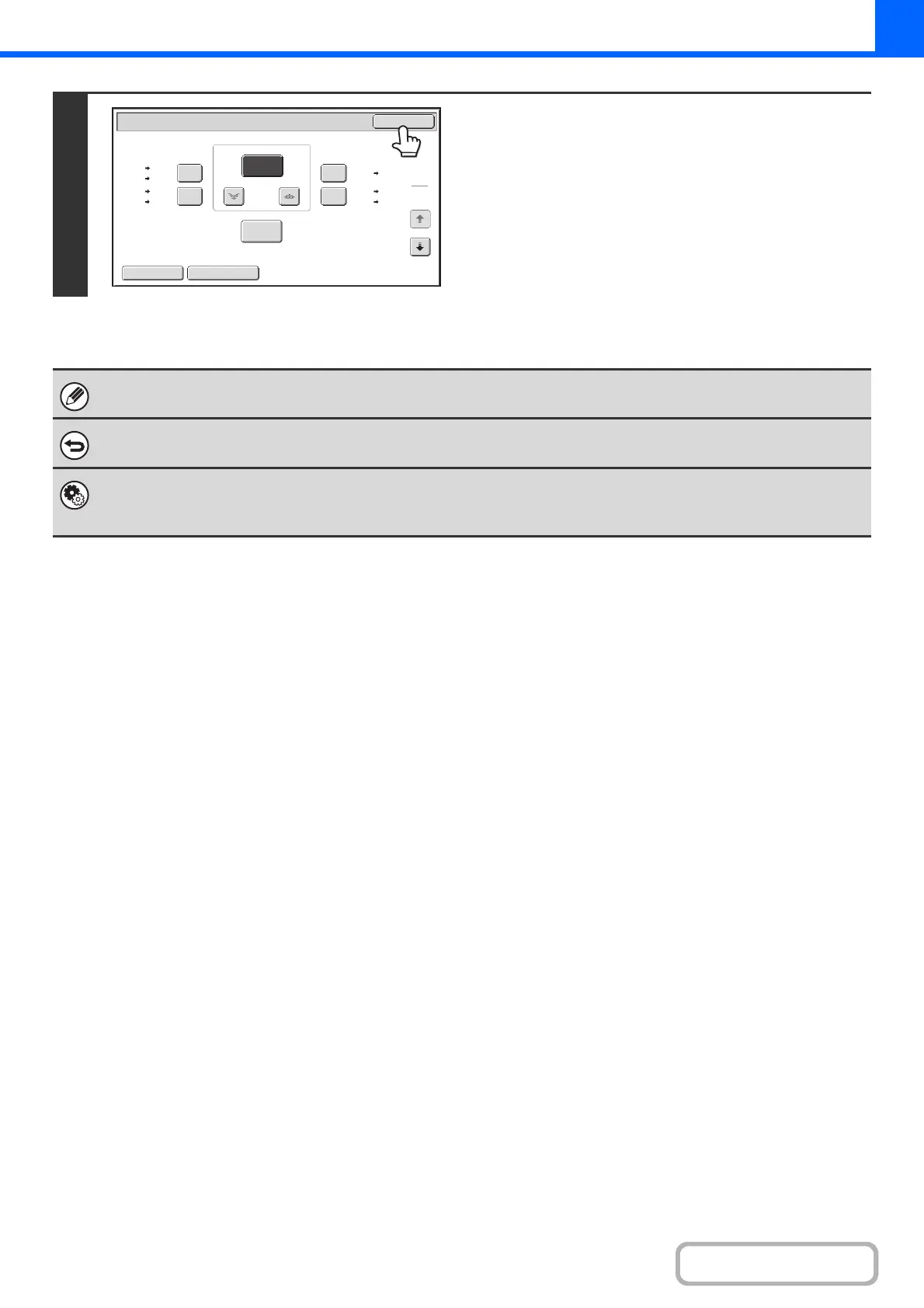 To return the ratio setting to 100%, touch the [Copy Ratio] key to display the ratio menu and then touch the [100%] key.
