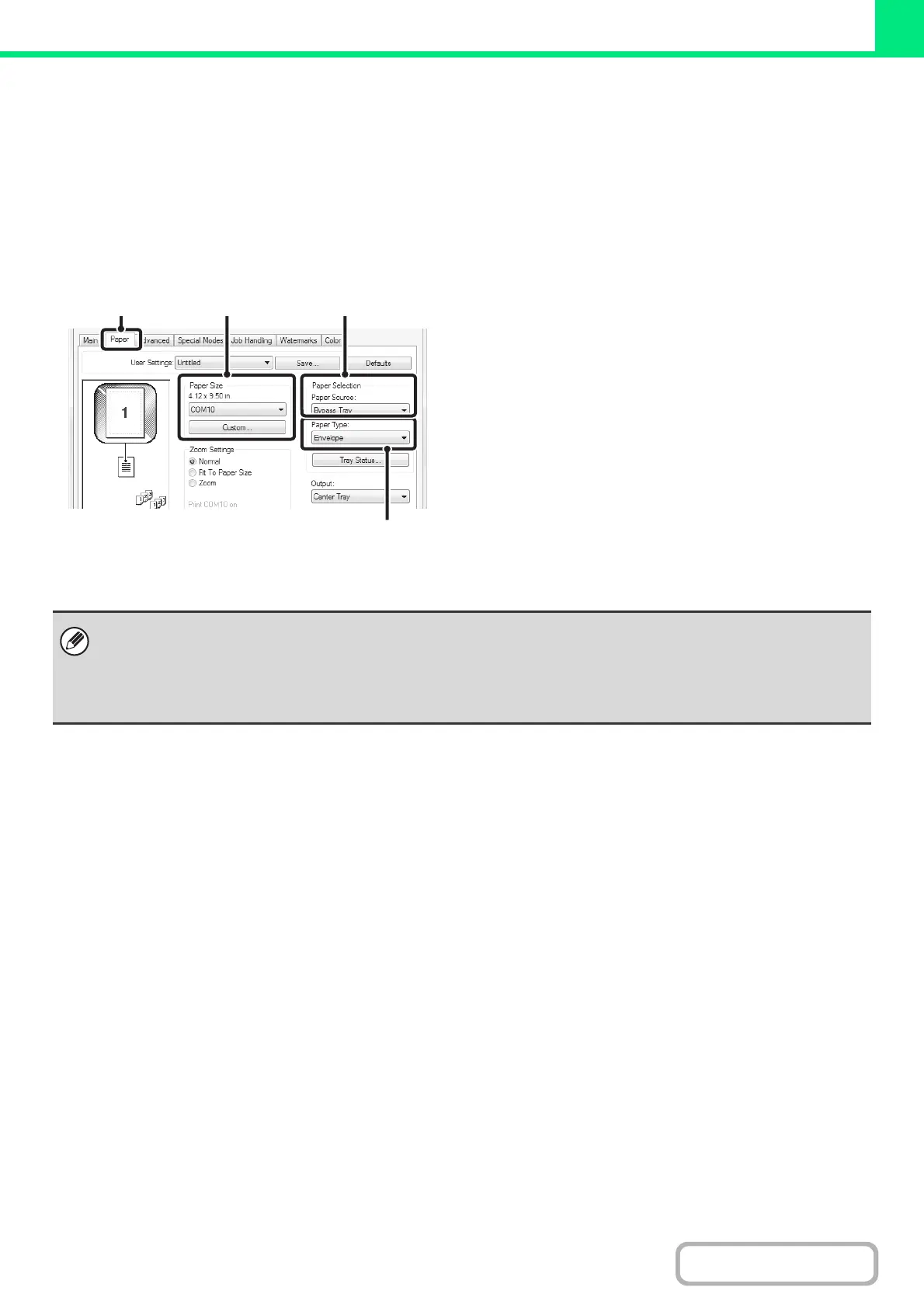 The bypass tray can be used to print on special media such as envelopes. The procedure for printing on an envelope