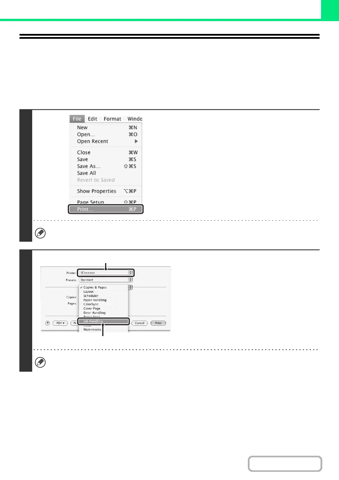 • In Mac OS X v10.5 to 10.5.1, select [Job Handling]