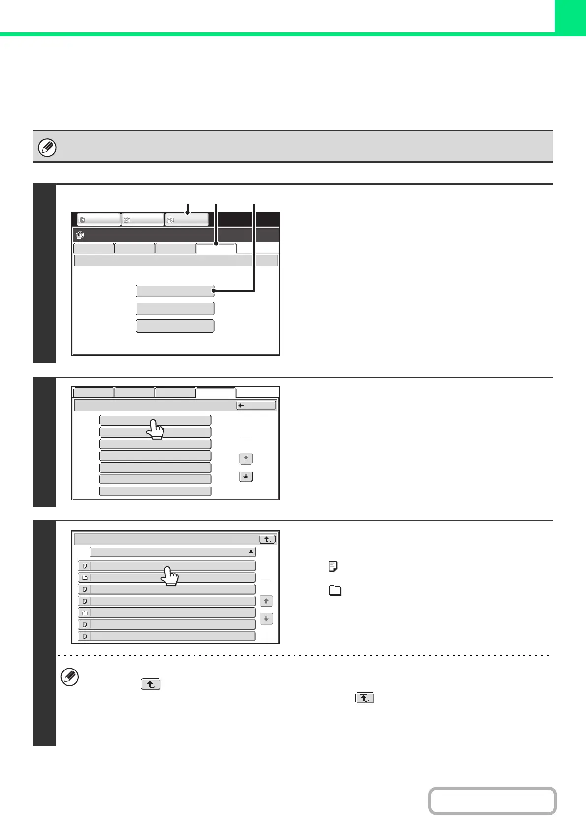 • Touch the [File or Folder Name] key to change the order of the files and folders displayed on the screen. The order