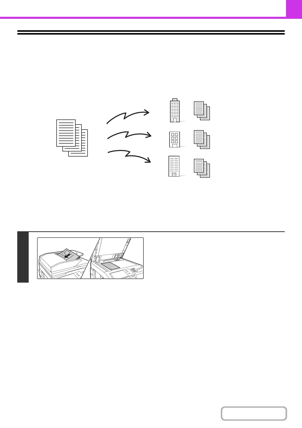 This function is convenient when you need to send the same fax to multiple destinations, such as sending a report to