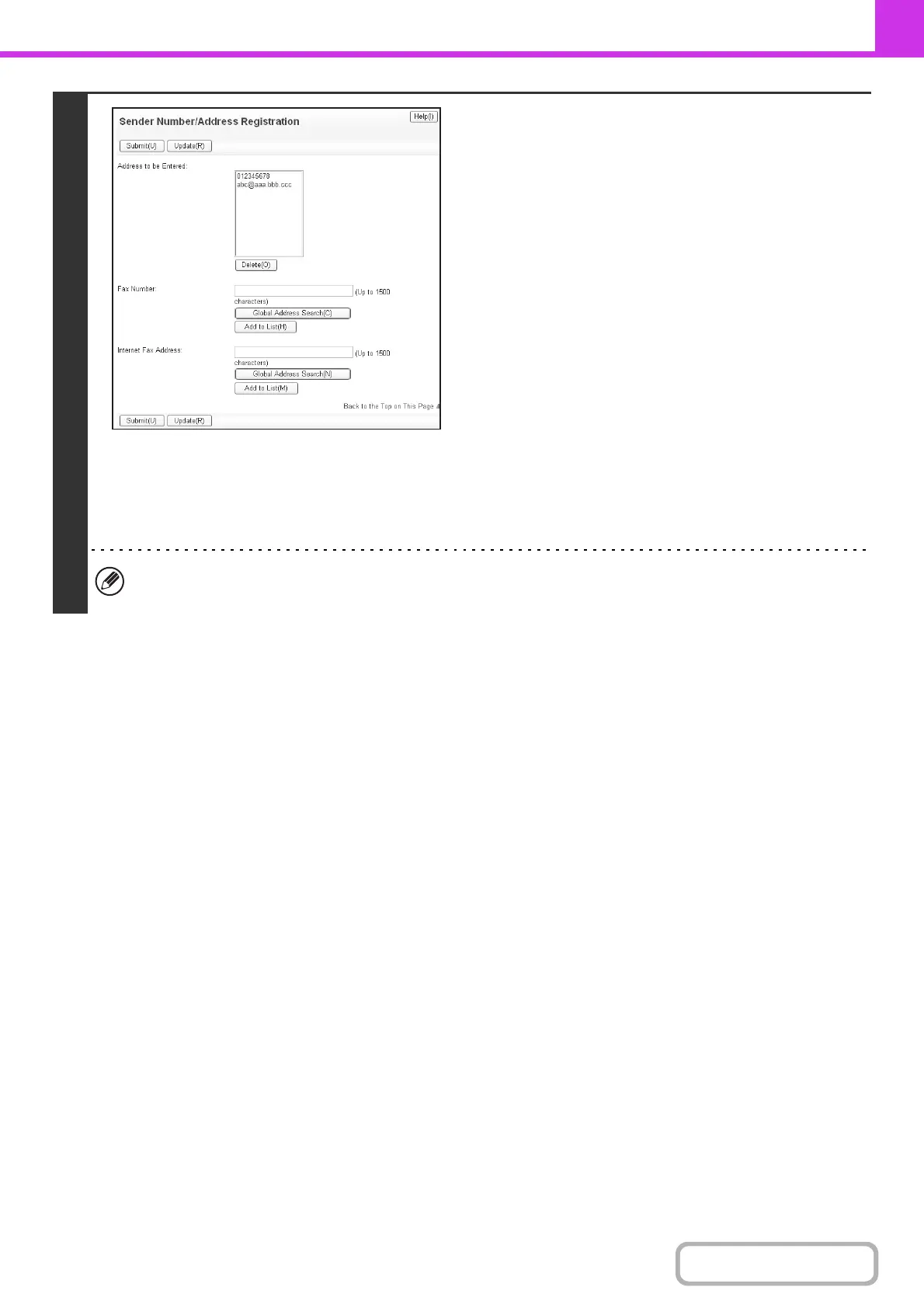 • To delete an entered address, select the address in "Address to be Entered" and click the [Delete] button.