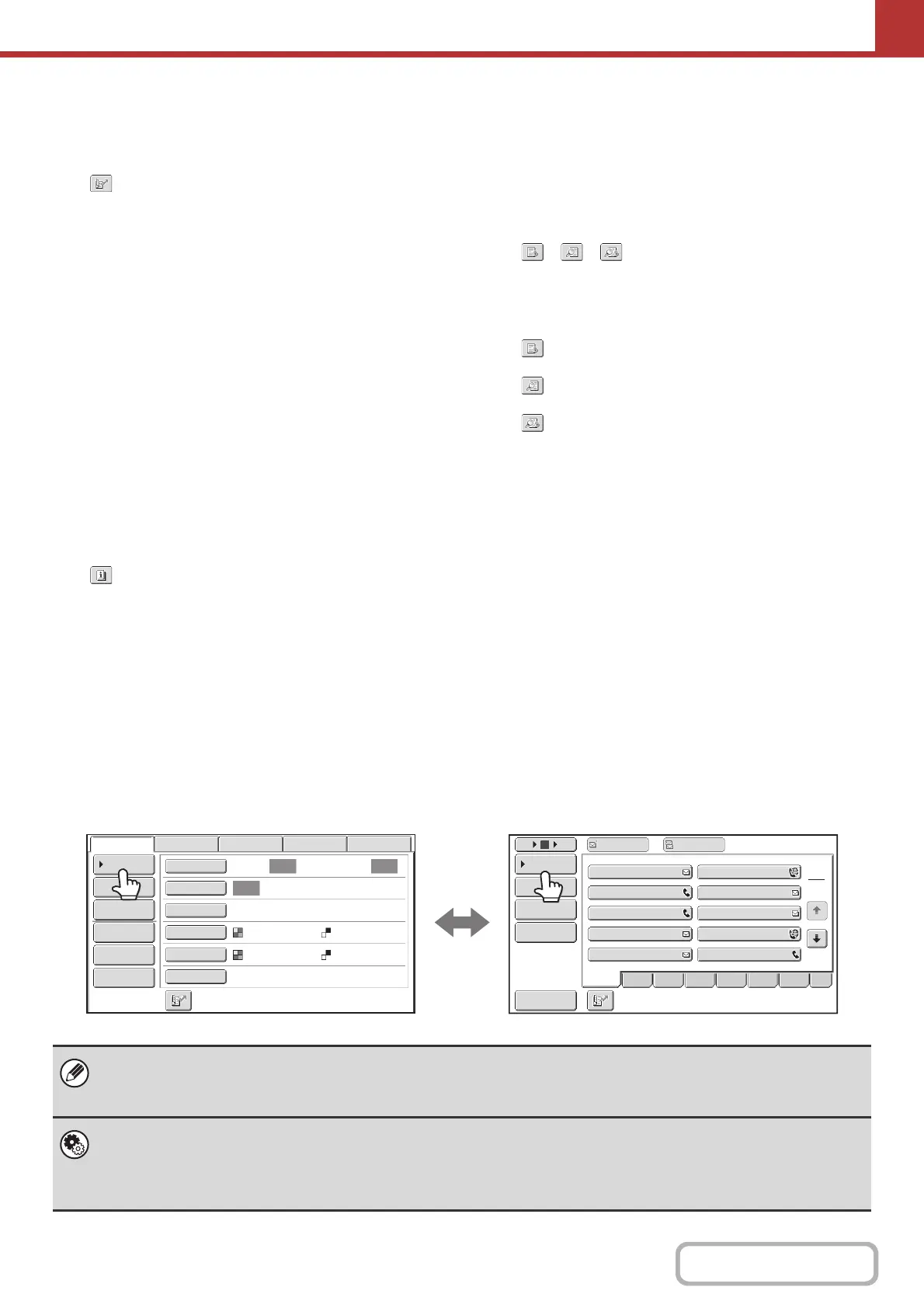 When sending an image, you can retrieve and use a stored transmission destination from the address book screen. The
