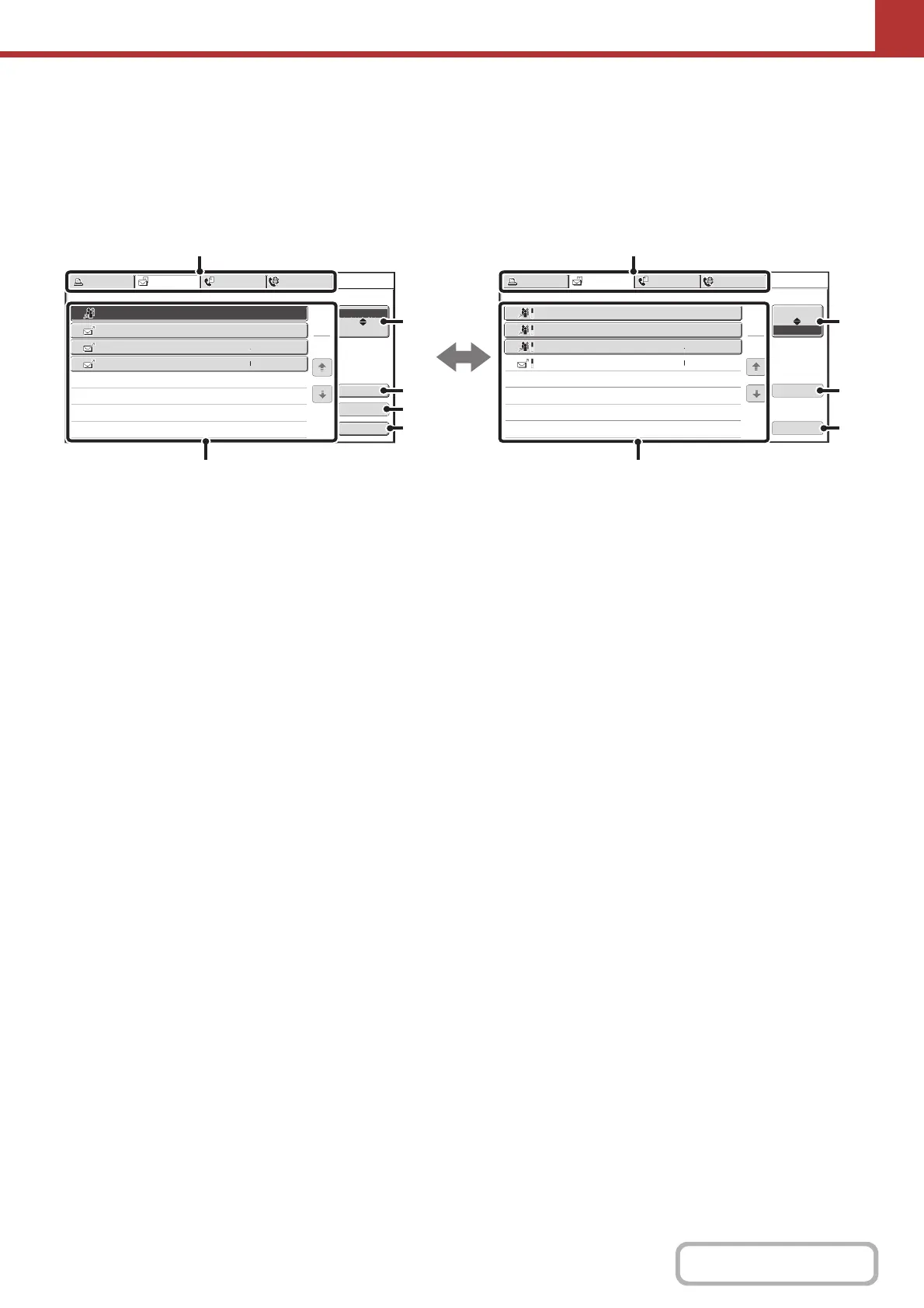progress, and the completed jobs screen. To switch between the two screens, touch the job status screen selector key
