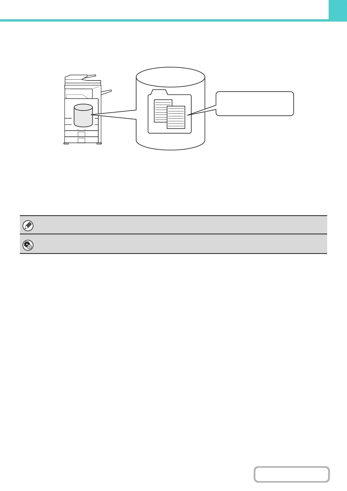 Files saved using "Quick File" are assigned the "Sharing" property. "Sharing" files can be retrieved and printed or
