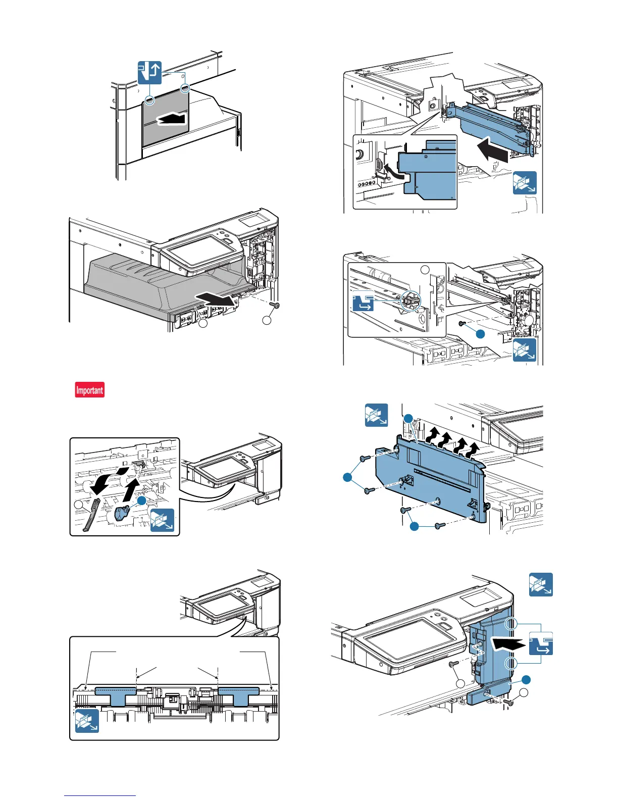 6) Attach the front cabinet upper, and fix with the fixing screw C