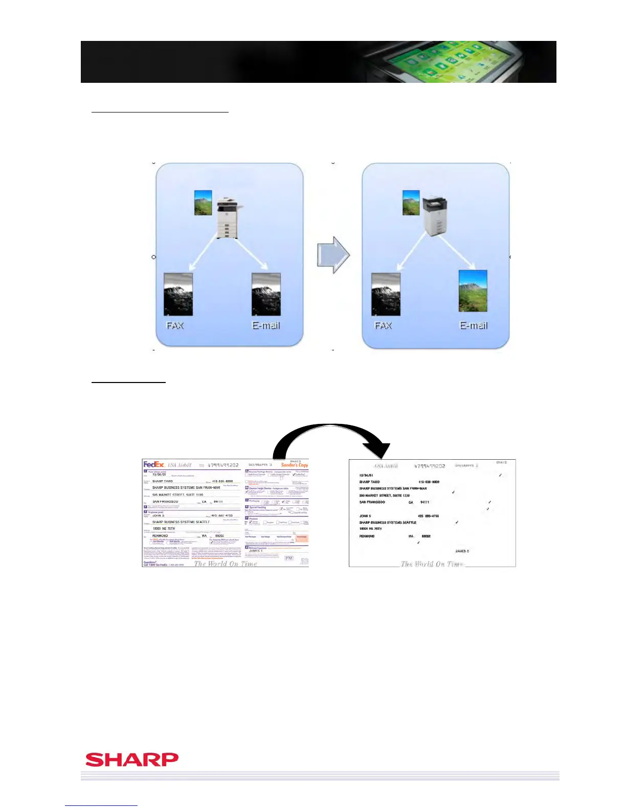 example, when sending data both to fax destination and email, users can send the data in B/W to Fax destination