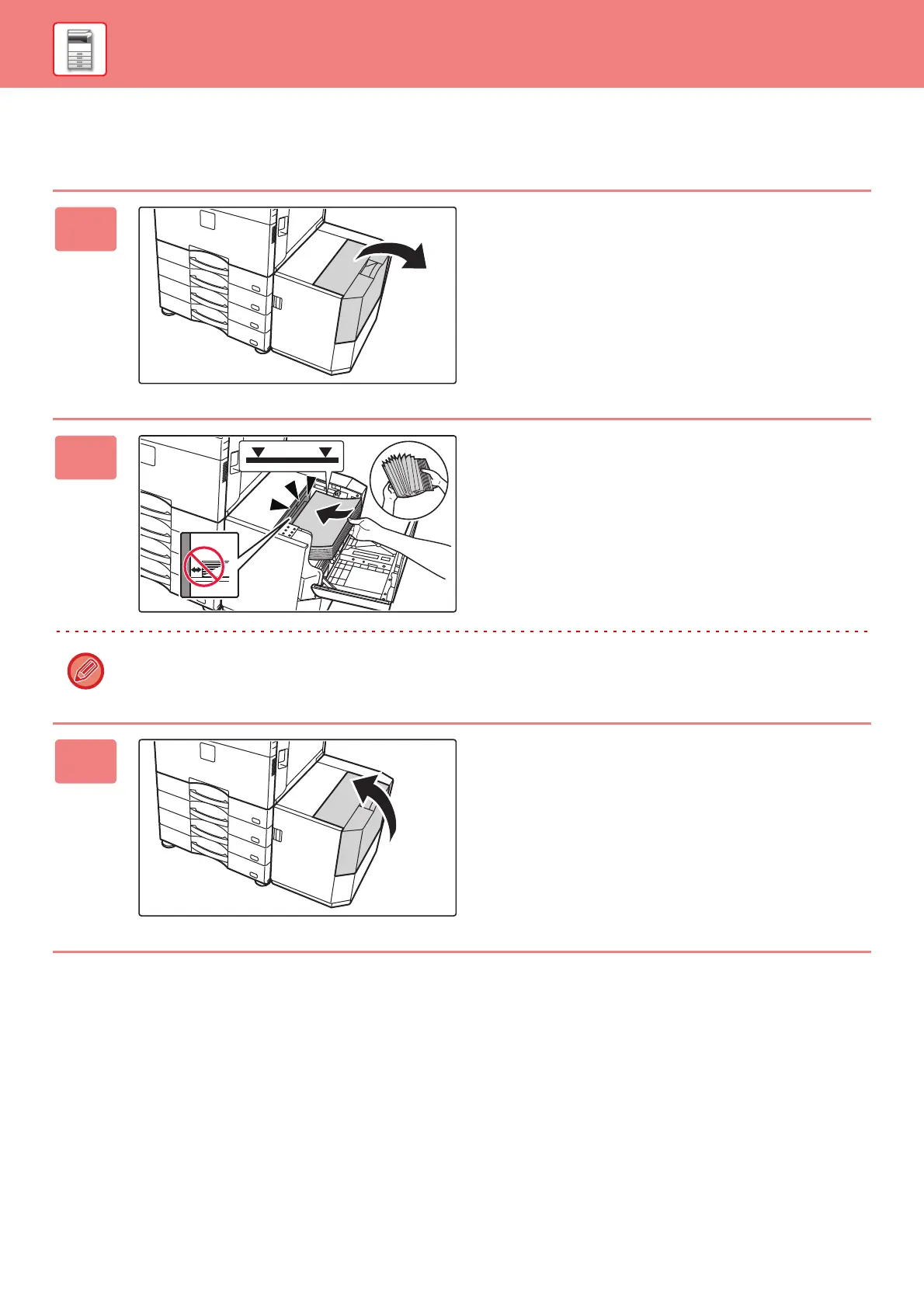 When adding paper, take care that previously loaded paper does not shift out of place. This may cause misfeeds and