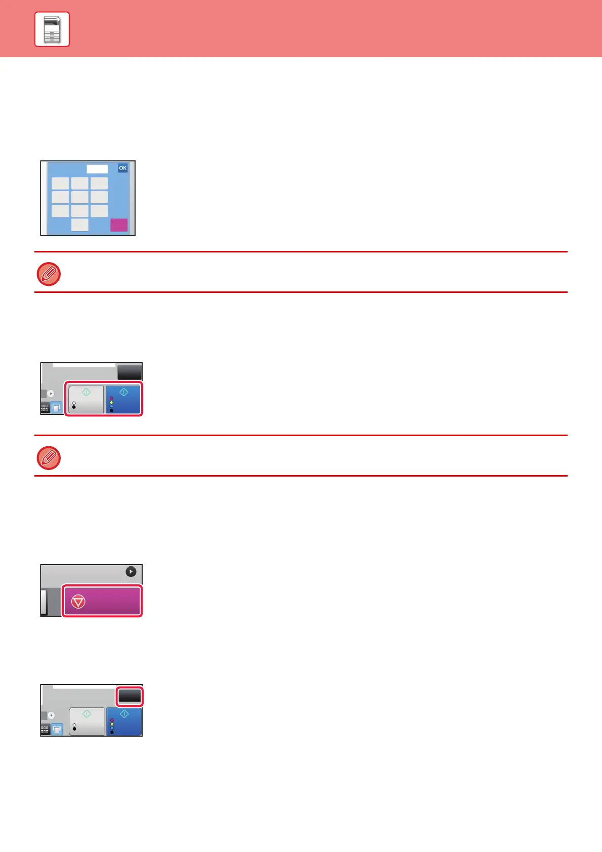 [Cancel Copy] key, [Storing Cancelled] key, [Cancel Scan] key, [Sending
