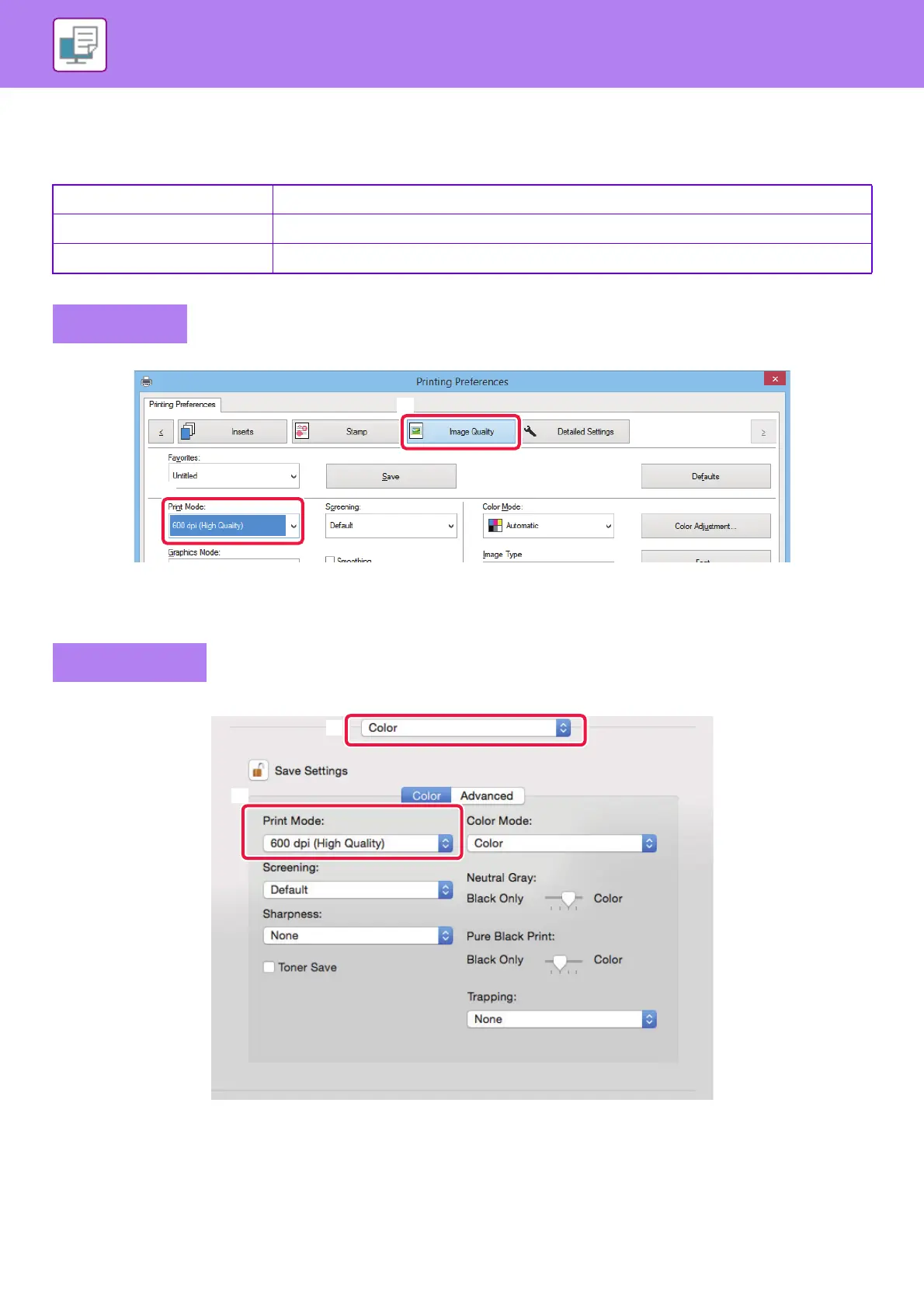 600 dpi This mode is suitable for printing data such as regular text or a table.