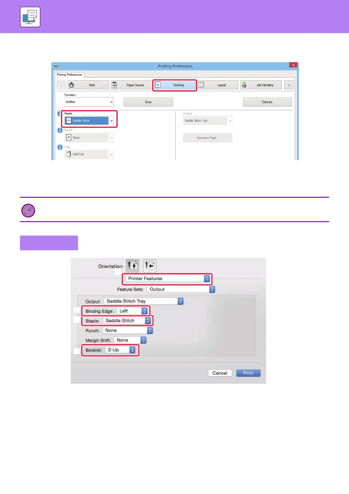 (5) Select [Saddle Stitch] from "Staple".