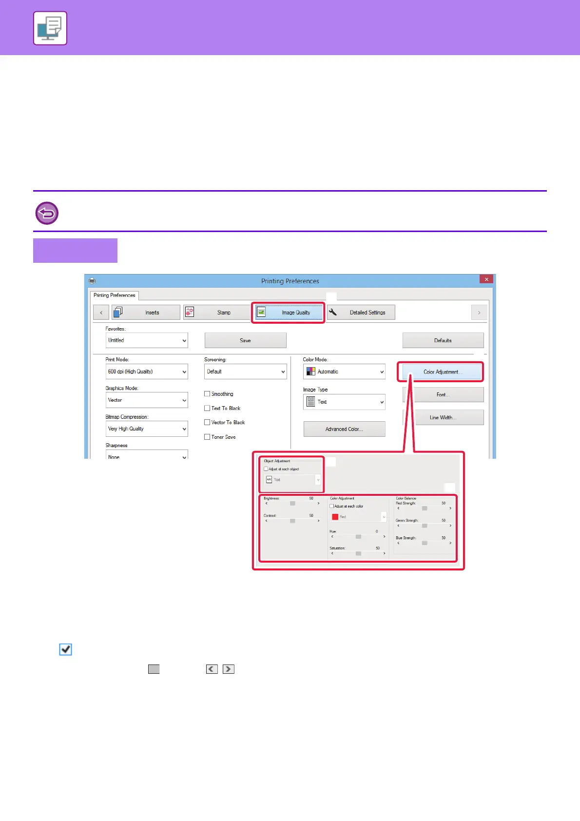 (3) To adjust objects (text, graphics, photos) individually, select the [Adjust at each object] checkbox