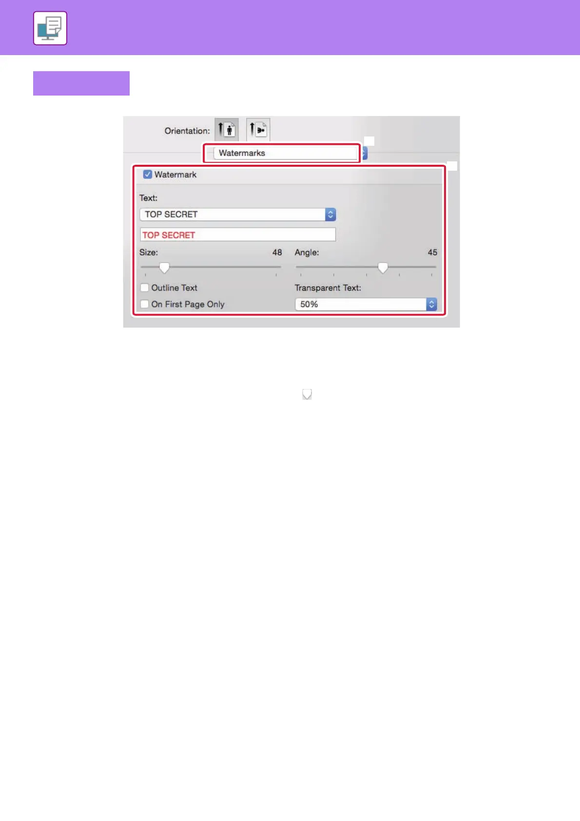 Configure detailed watermark settings such as selection of the text.