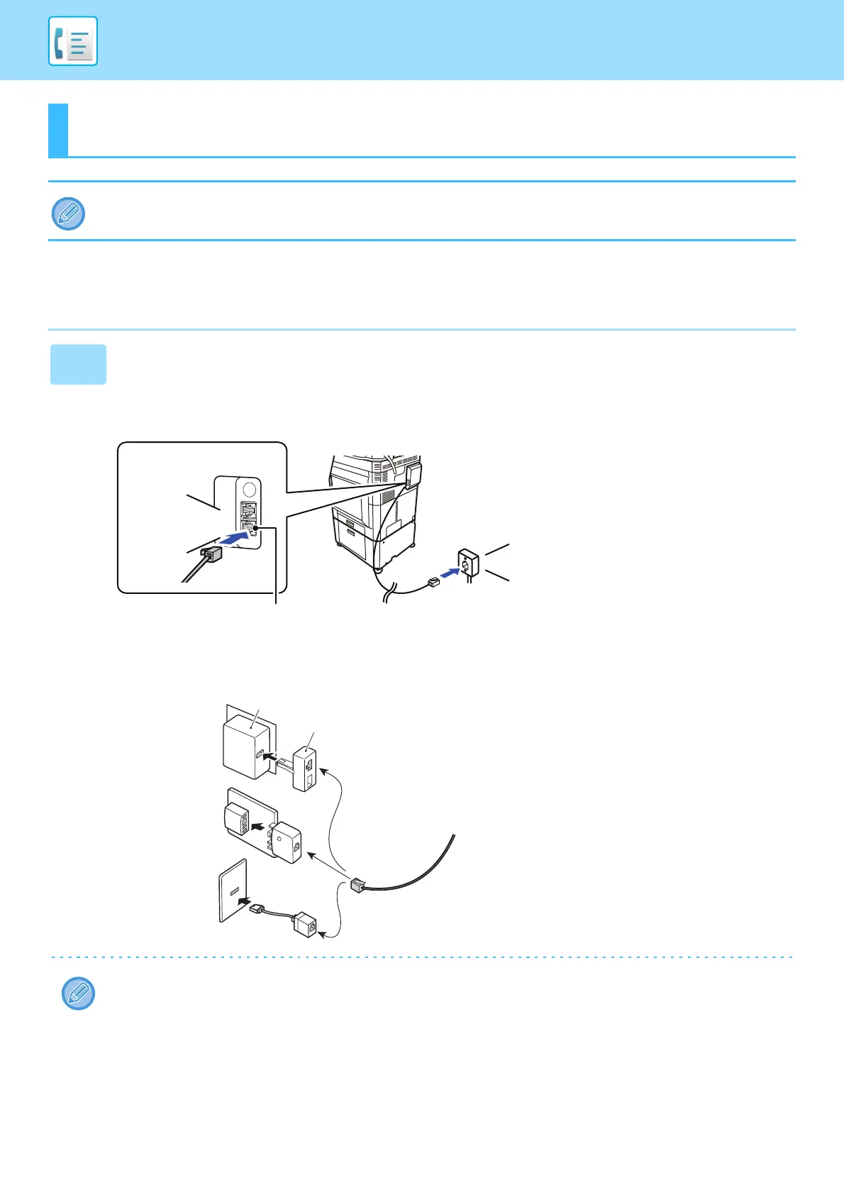 To use the machine as a facsimile, connect the telephone line, and set the telephone line type.