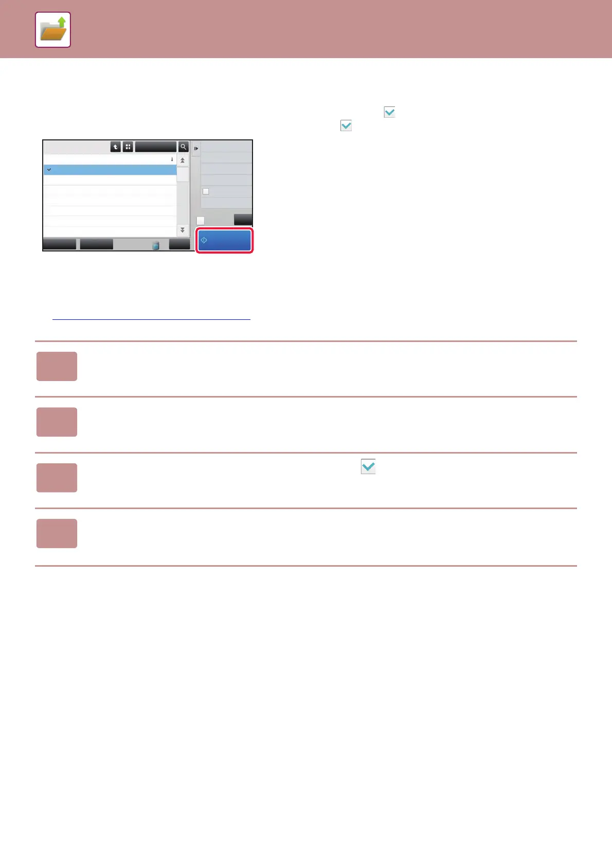 Prints a file with the various settings used when it was saved. Select a file and tap the [Print Now] key.