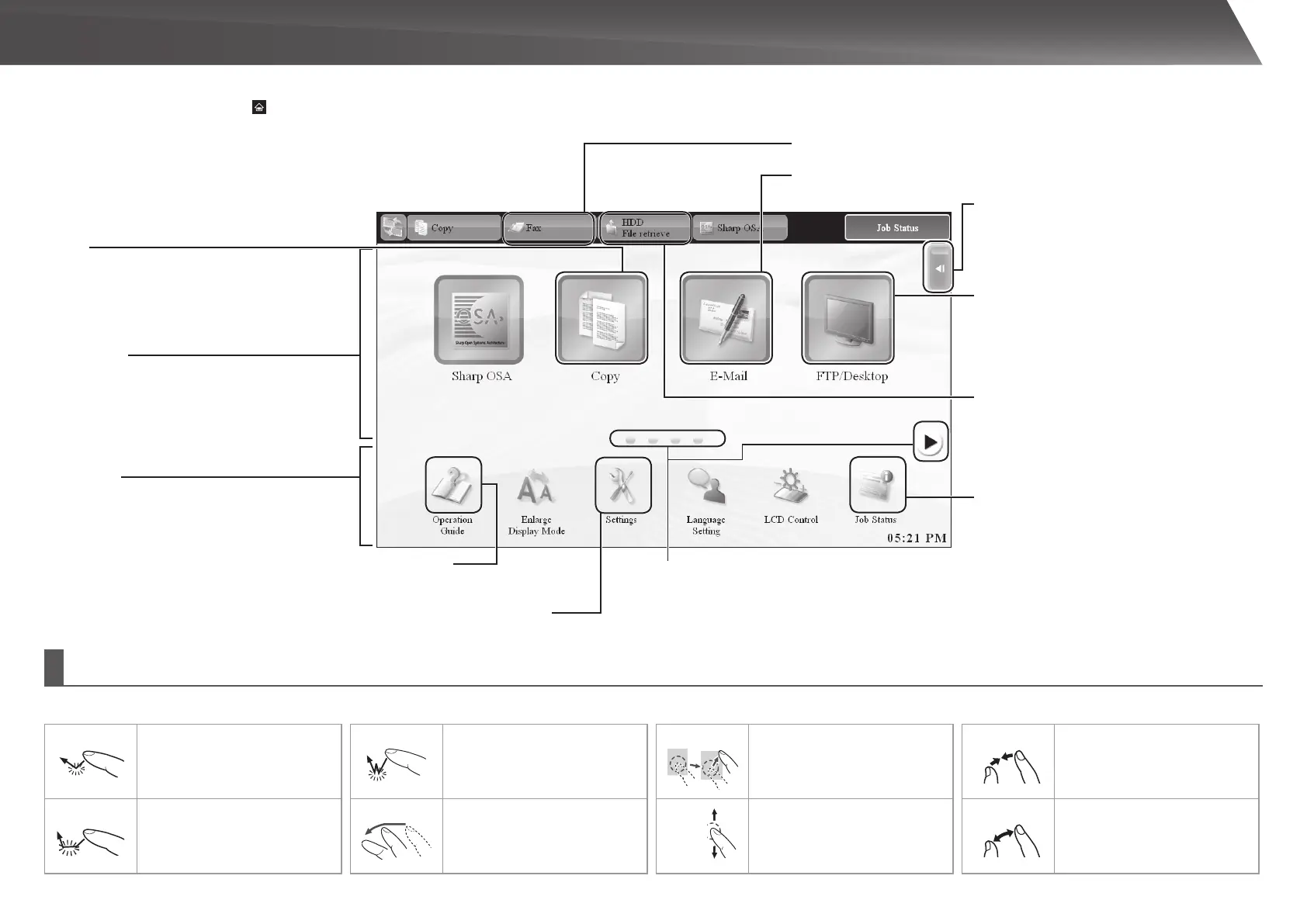 In addition to the conventional "single tap" operation, you can also operate the touch panel using presses, flicks, and slides.
