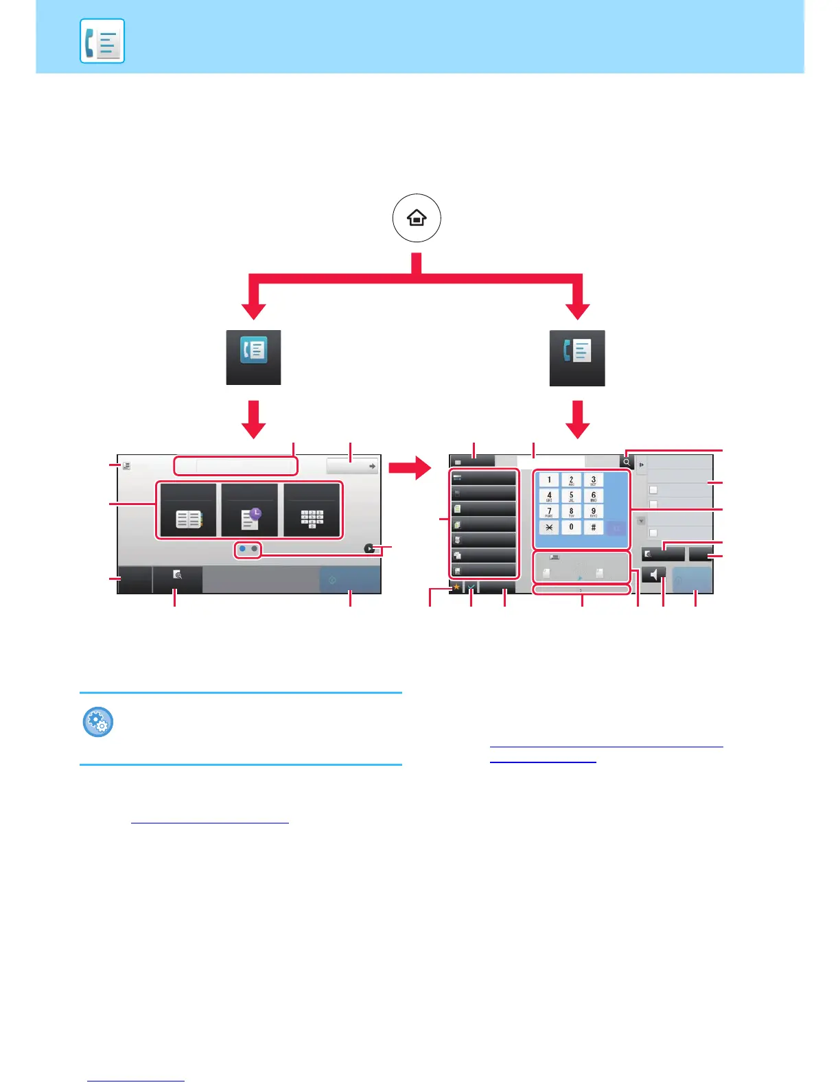 (9) Setting keys that can be used for the fax.