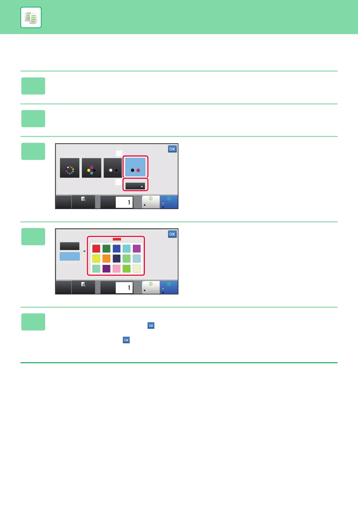 After the settings are completed, tap the key on the [2 Colour] screen, and check that the changed setting is