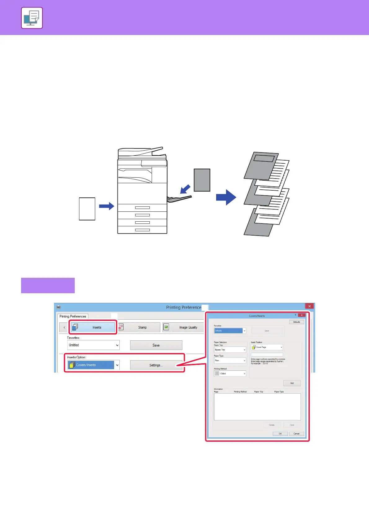 (2) Select [Covers/Inserts] from [Inserts Option], and click the [Settings] button.