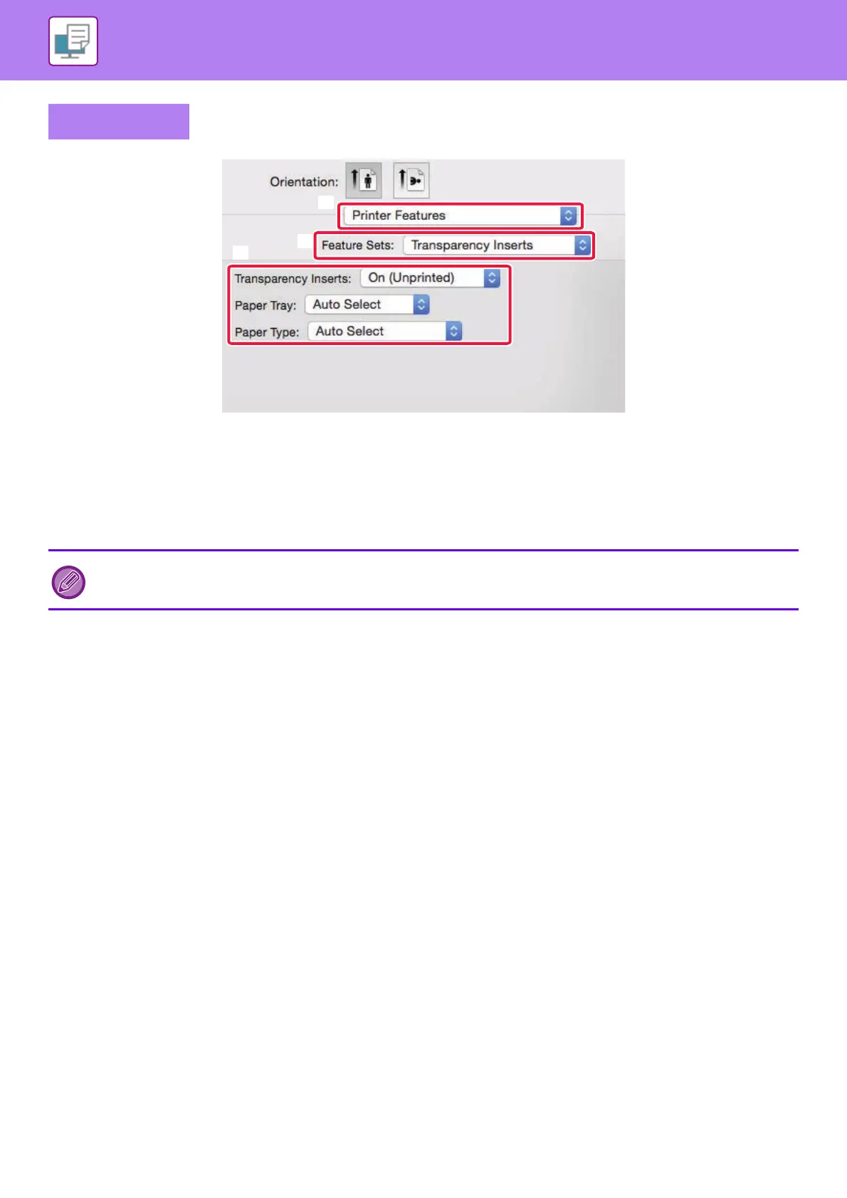 When [On (Printed)] is selected from "Transparency Inserts", the same content as that printed on the transparency film is also