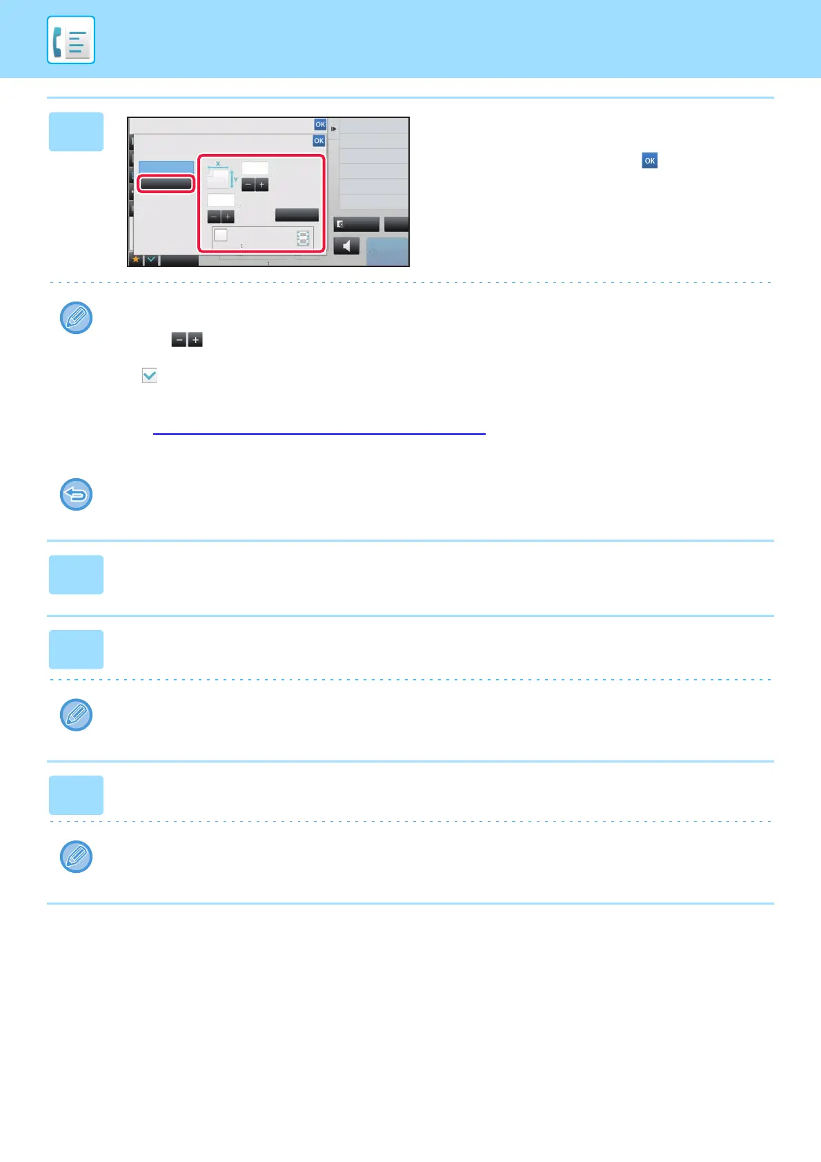 this case, the screen of this step appears when you tap the scan size key. For the procedure for setting the send size,