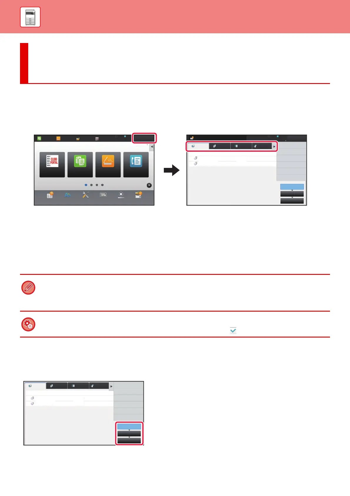The job status screen is divided into the following four tabs, enabling you to select a job list by tapping a desired tab.