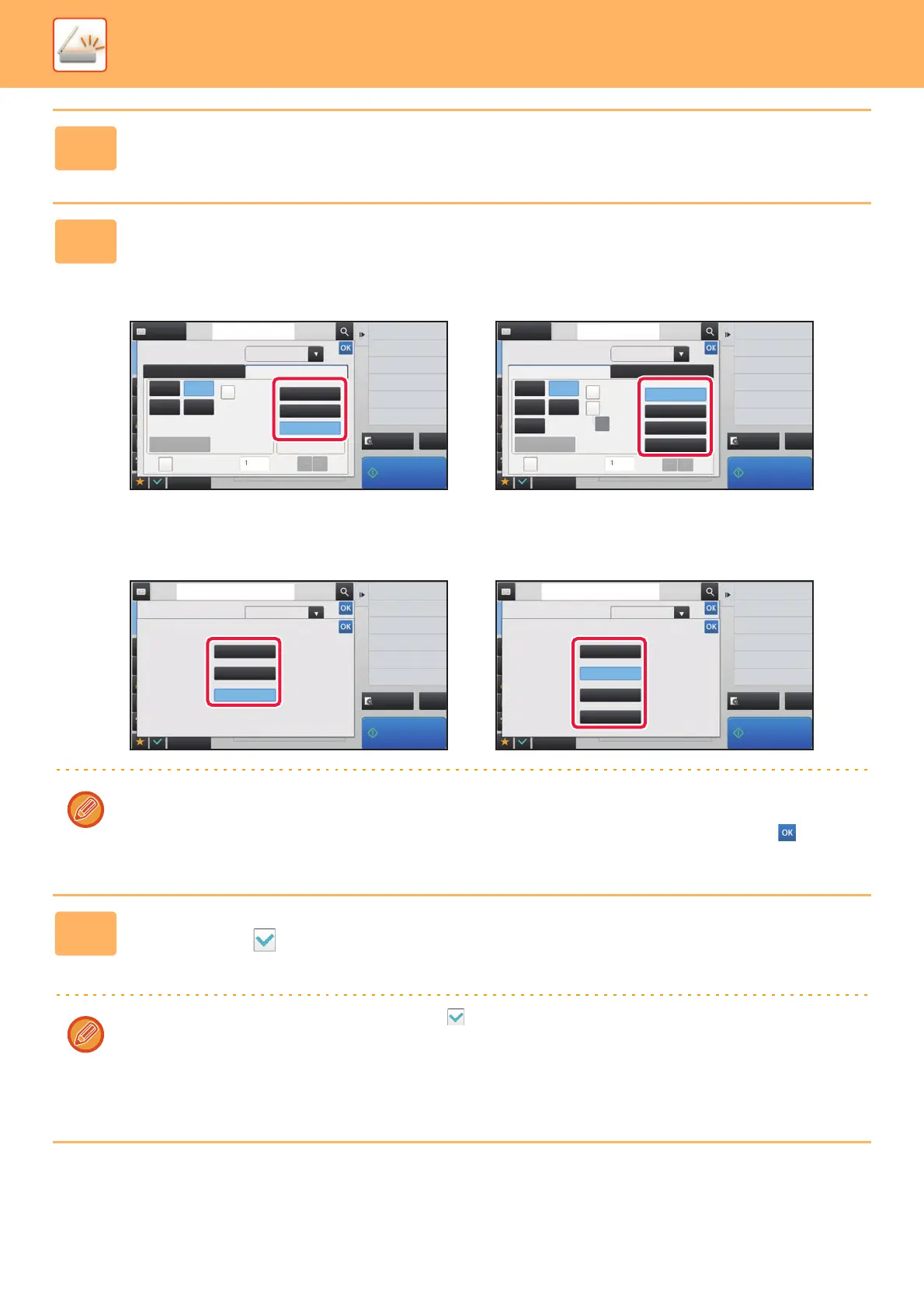 • On the MX-3060N/MX-3070N/MX-3560N/MX-3570N/MX-4060N/MX-4070N/MX-5070N/MX-6070N, tap when you