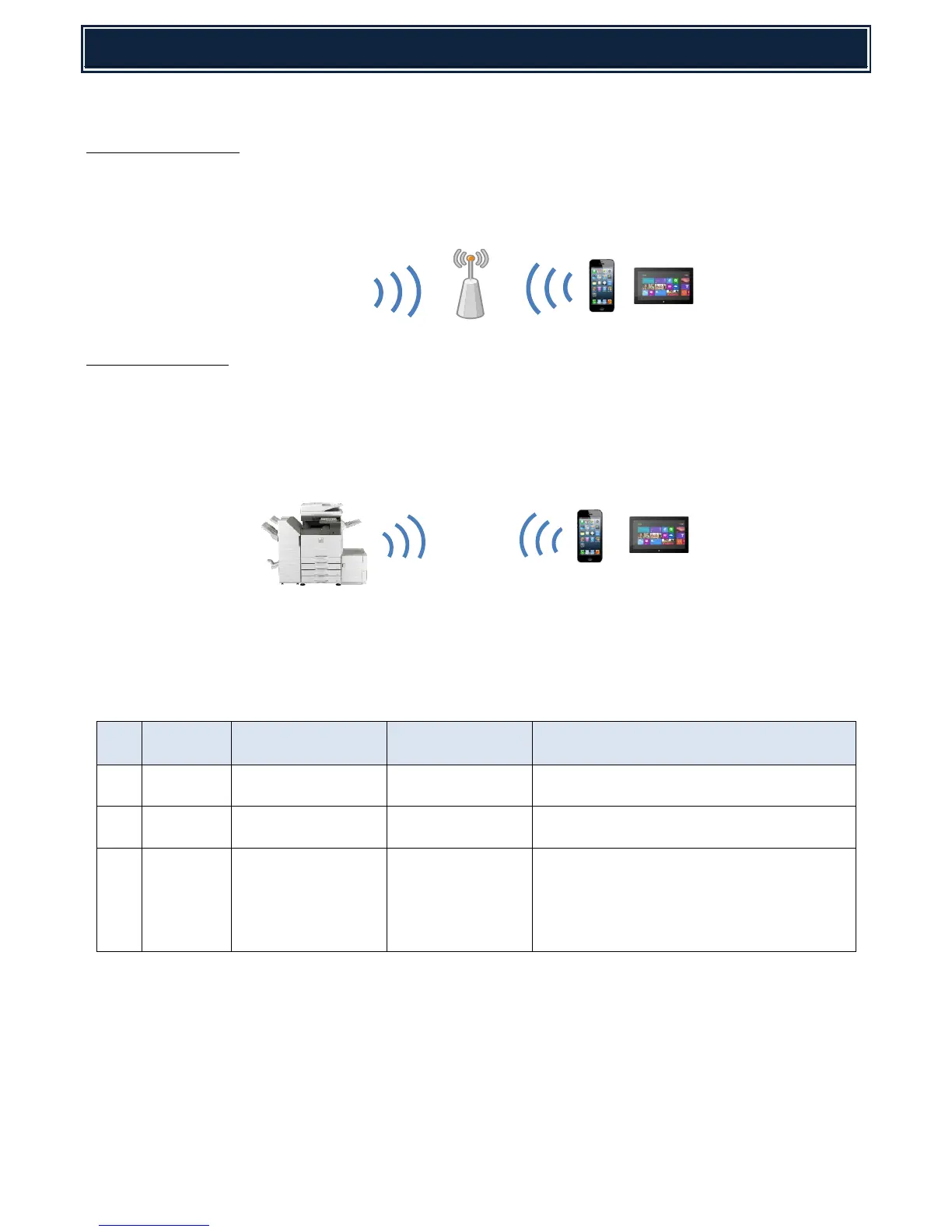 devices acquire an IP address from the MFP directly, allowing Print/Scan features to be available from mobile