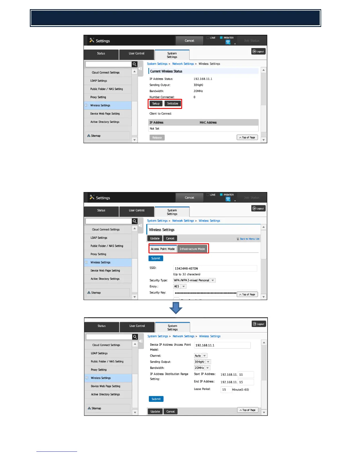 6. Configure the required Wireless Settings for Access Point Mode or Infrastructure Mode by selecting