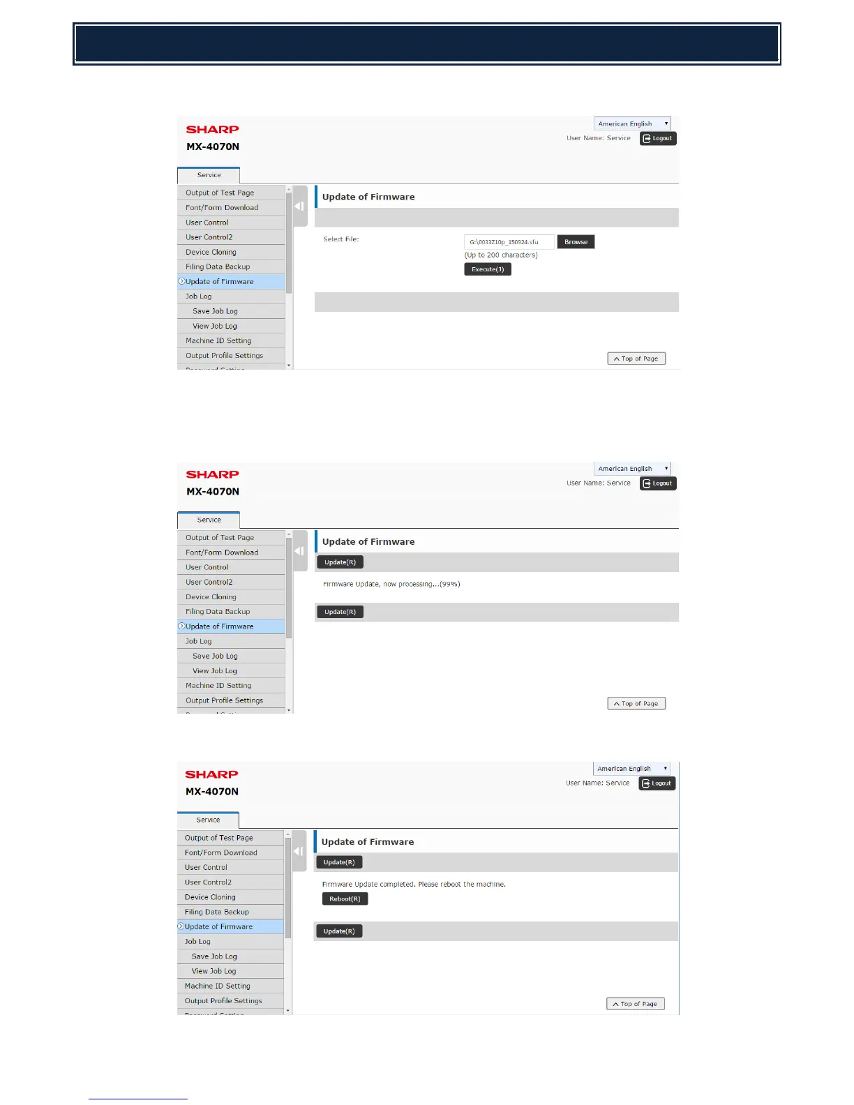6. When the firmware upgrade is complete, click Reboot to execute a remote restart of the machine.