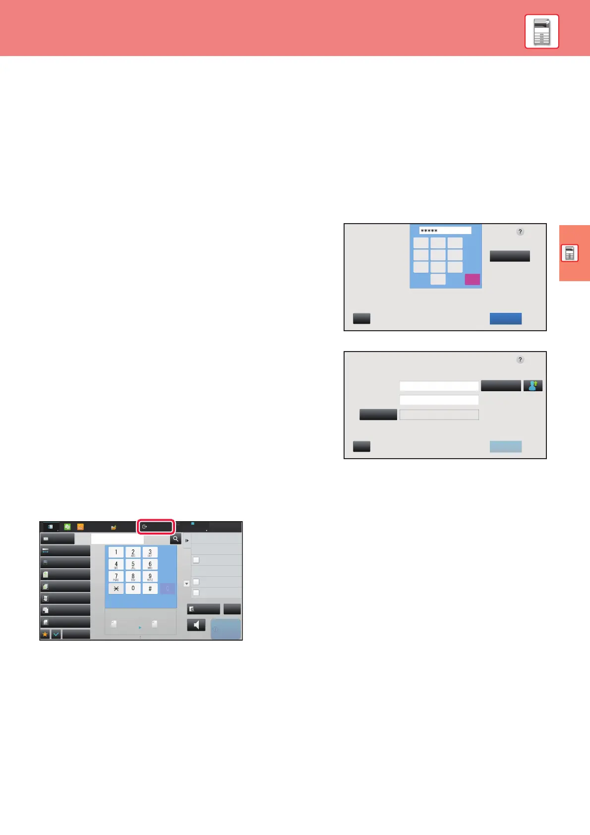 When user authentication is enabled in settings mode, you must log in in order to use the machine. User authentication