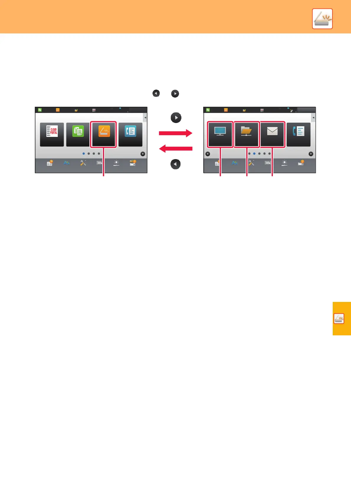 In the home screen, tap the icon of the desired scanner mode to display the base screen of scanner mode.