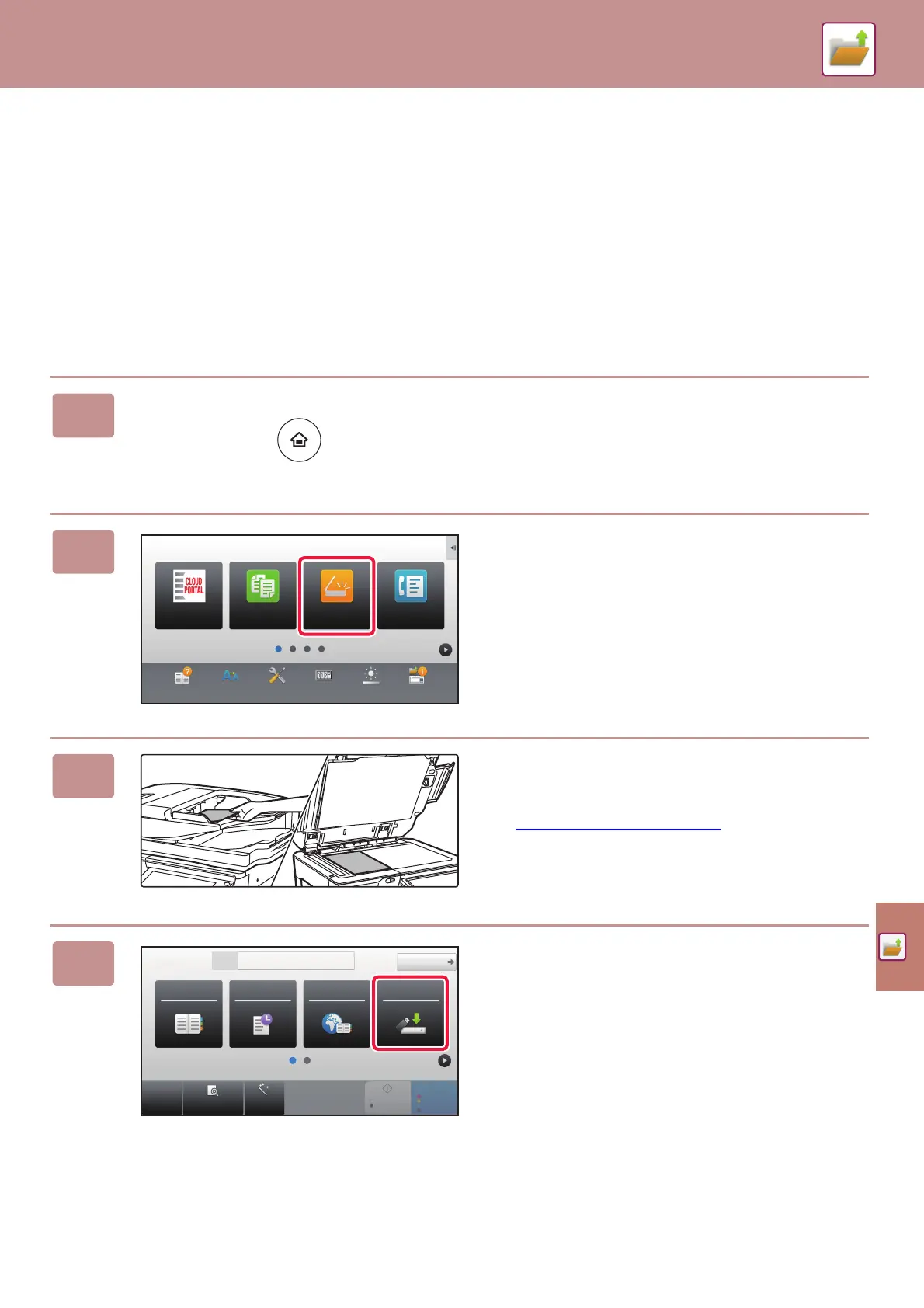 To save to a custom folder, tap the [HDD File retrieve] key in the Home screen, tap [Scan to HDD] on the action panel,