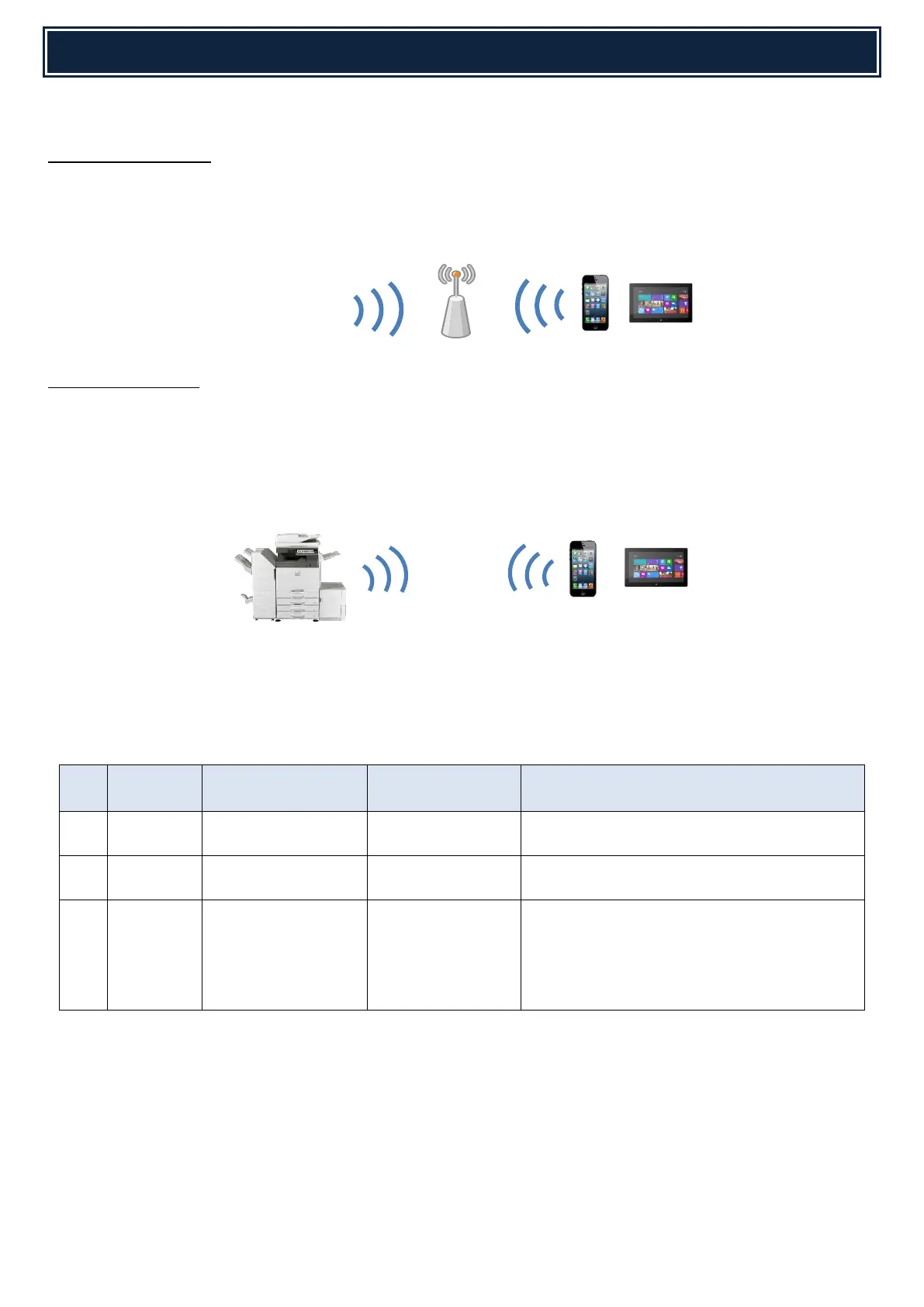 devices acquire an IP address from the MFP directly, allowing Print/Scan features to be available from mobile