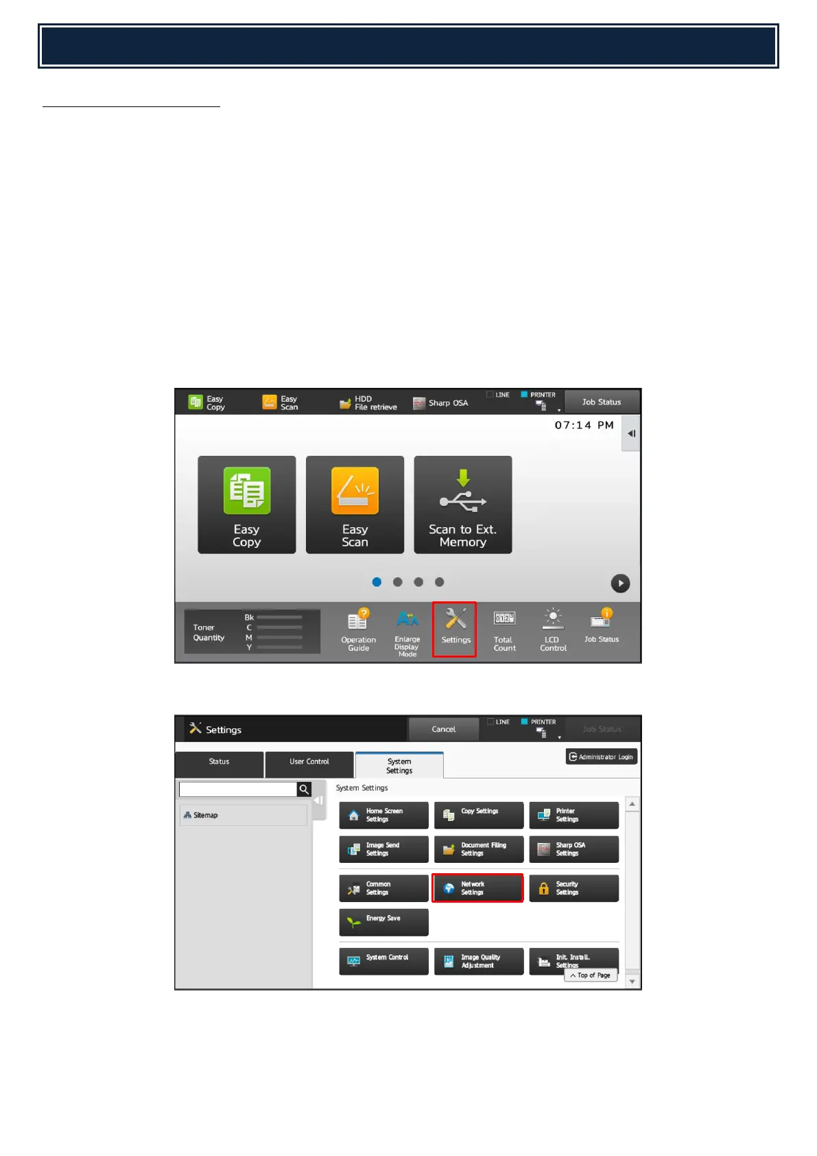 2. Select Network Settings and enter the Administrators’ password when prompted:-