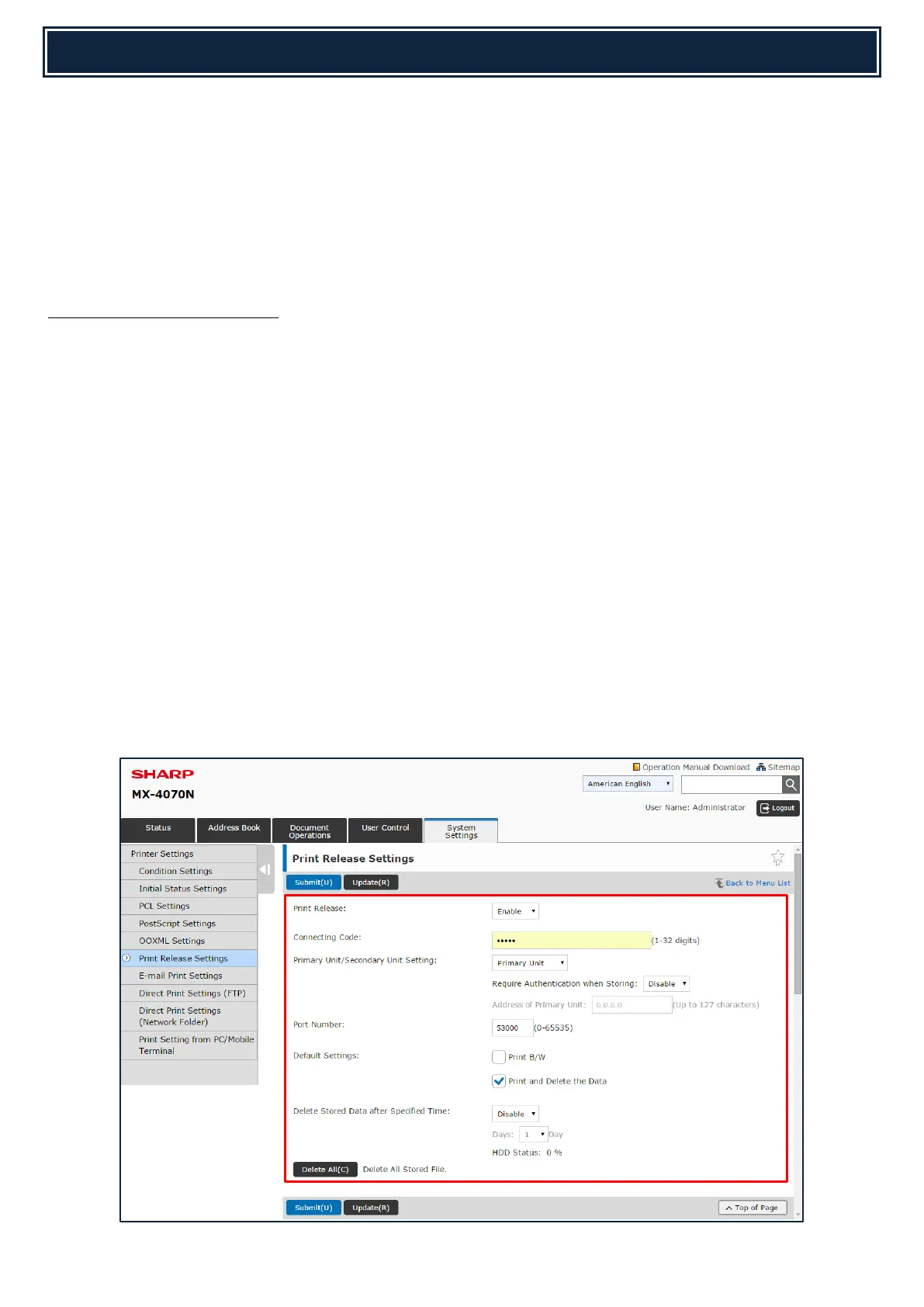 System Settings Printer Settings Print Release Settings