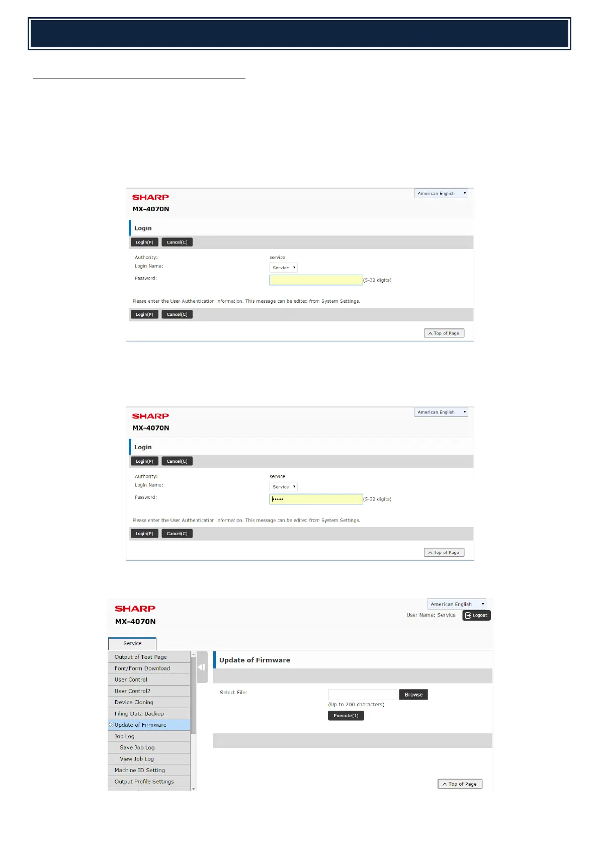 2. Select/Enter the “Service” Username and Password to access the Service Webpage and click Login:-
