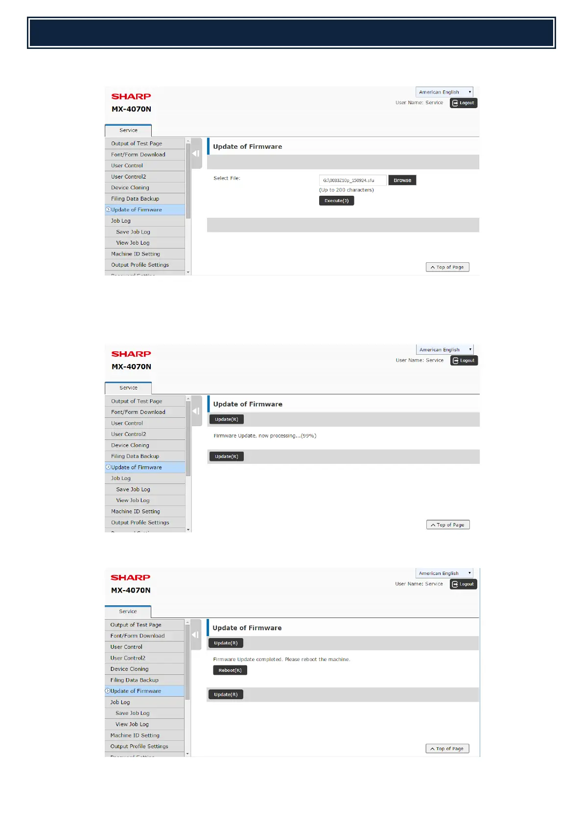 6. When the firmware upgrade is complete, click Reboot to execute a remote restart of the machine.