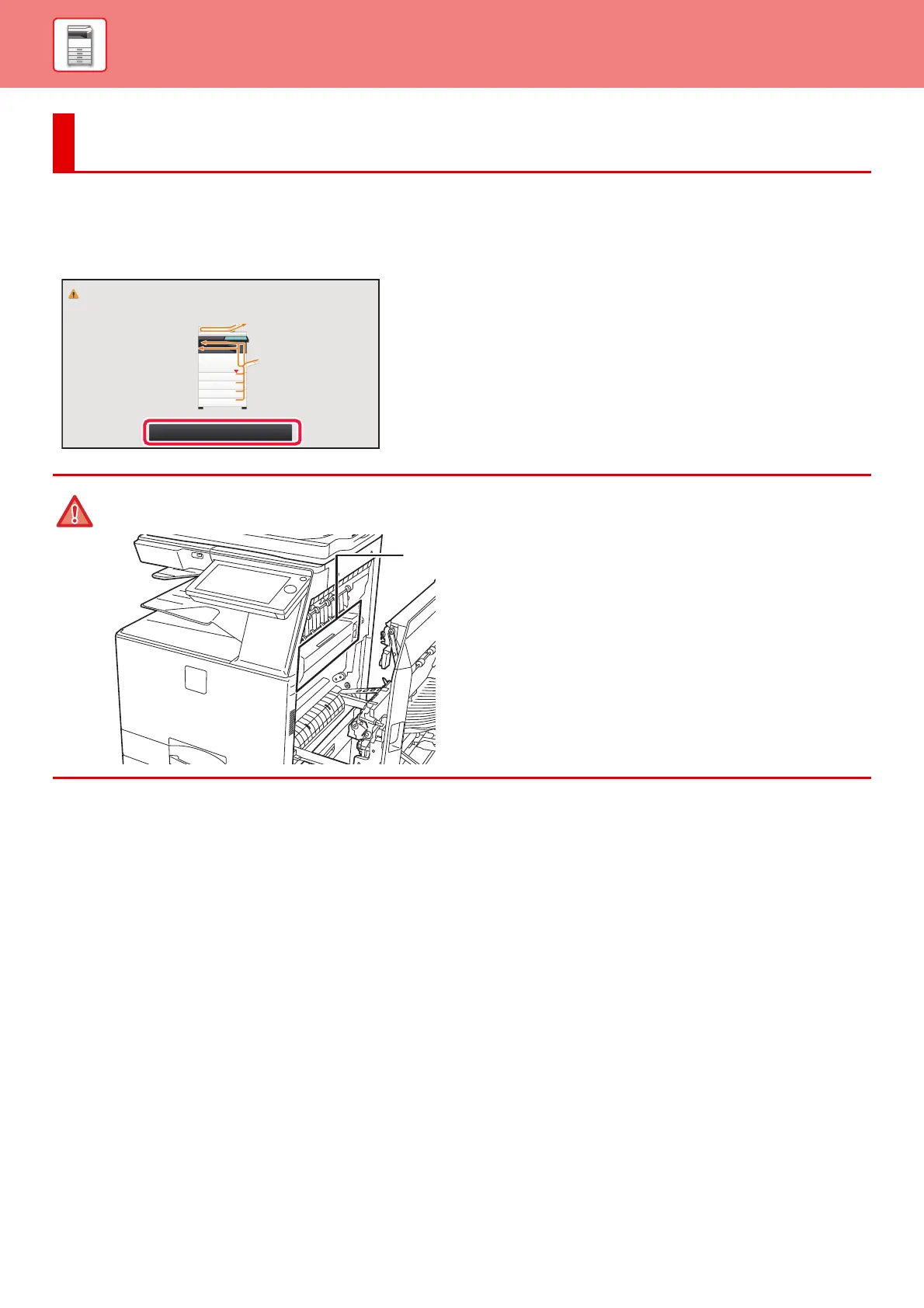 If a paper misfeed occurs, the "Paper Jam" message will appear in the touch panel and printing and scanning will stop.