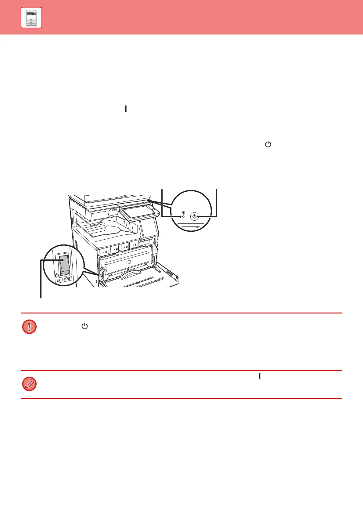 • When using the fax or Internet fax function, always keep the main power switch in the " " position.