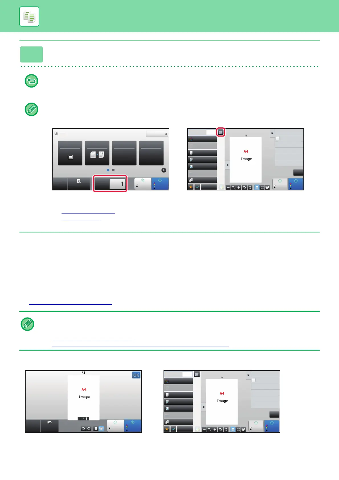 Tap the copies display key to specify the number of copies.