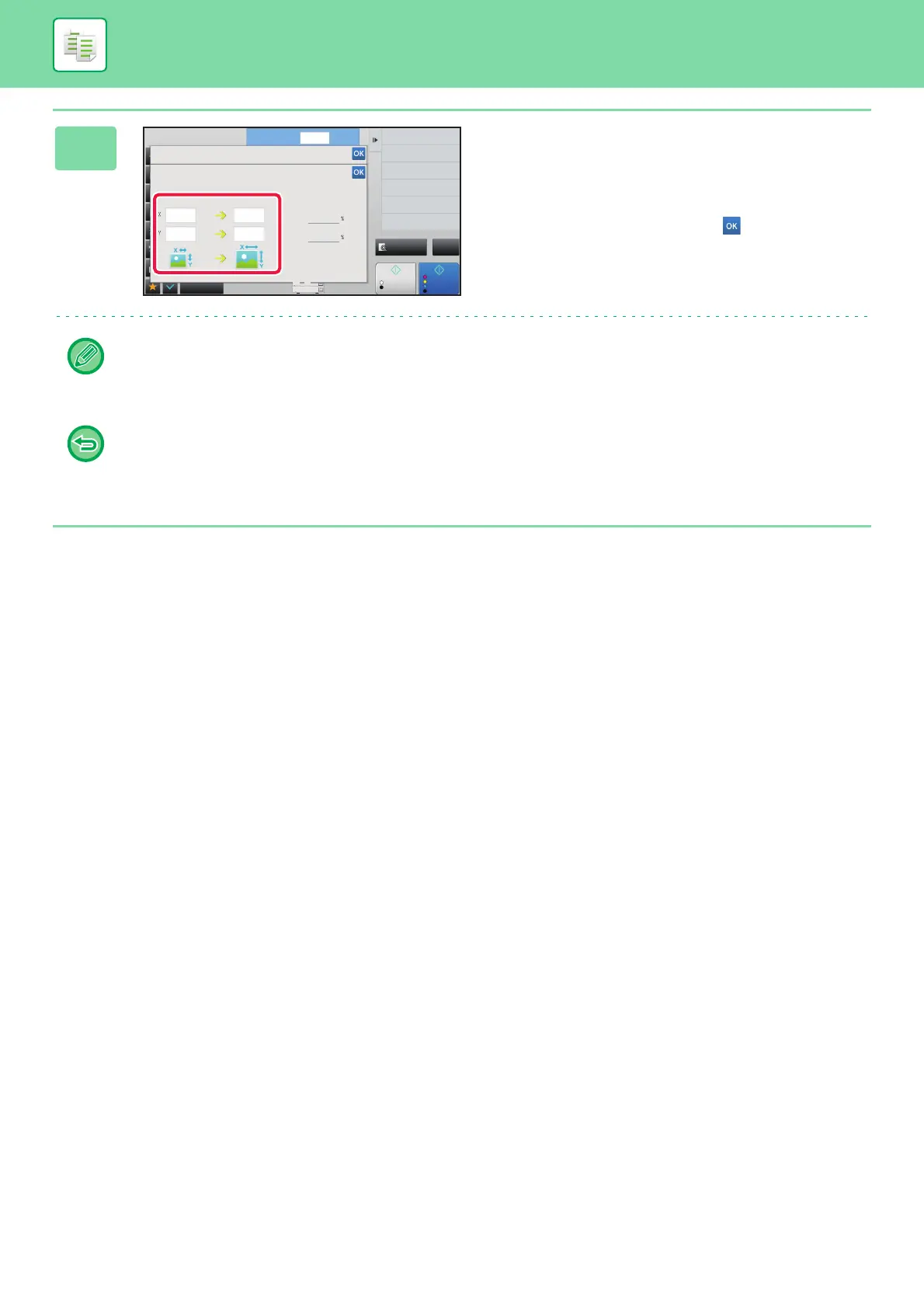 Tap the image size and output size areas, and enter the sizes using the numeric keys.