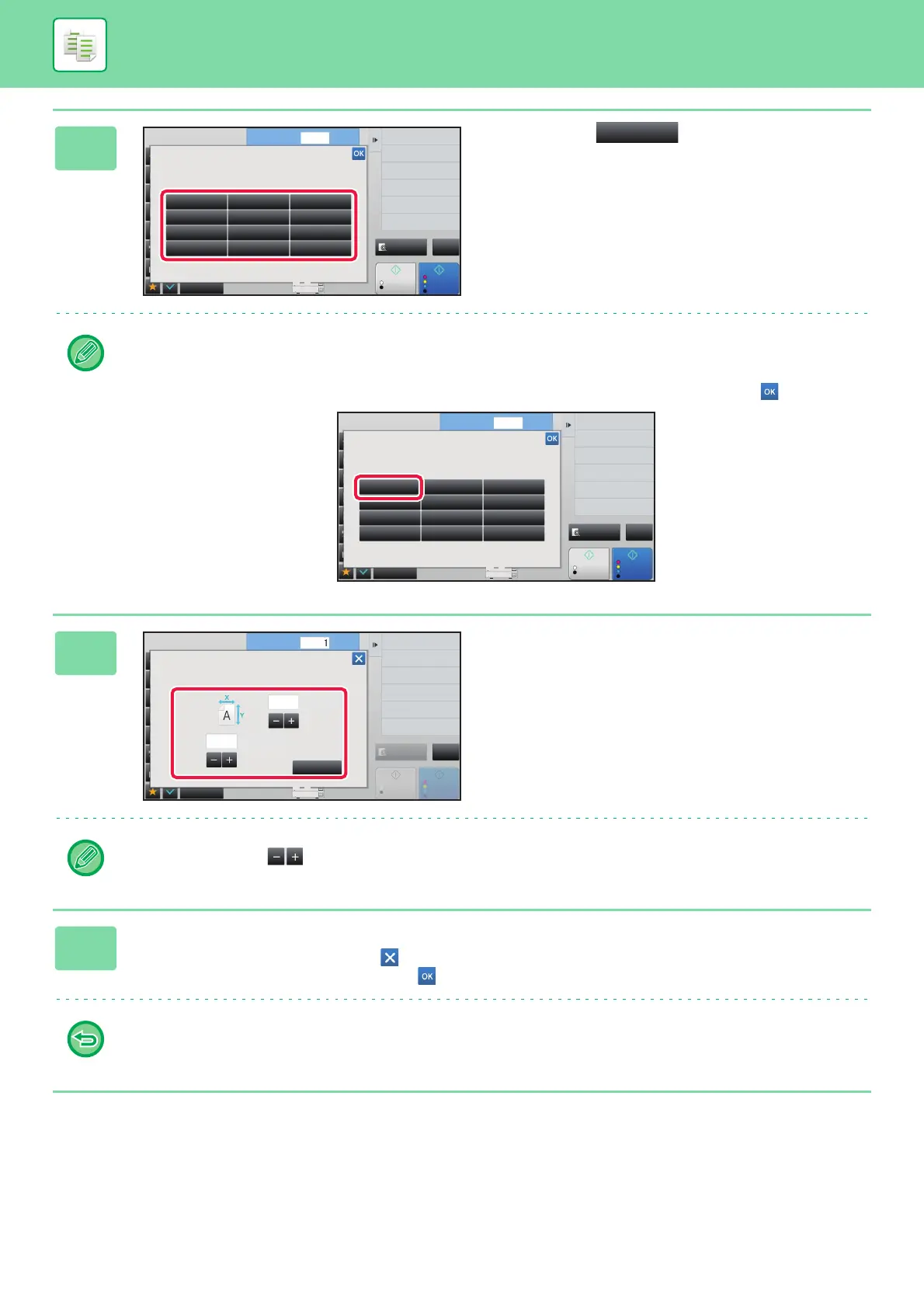 After the settings are completed, tap the key, and check that the key of the size stored on the original screen is
