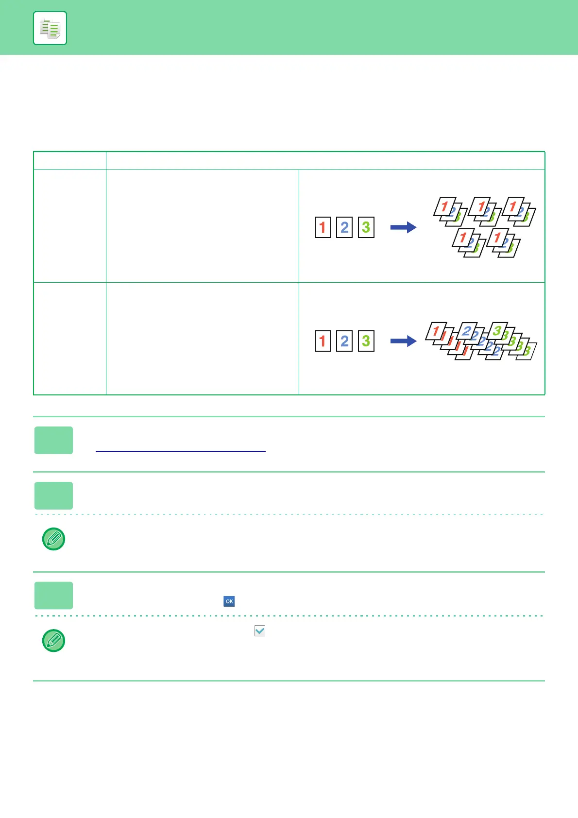 If a finisher or saddle stitch finisher is installed, tap the [Sort/Group] key in [Others].