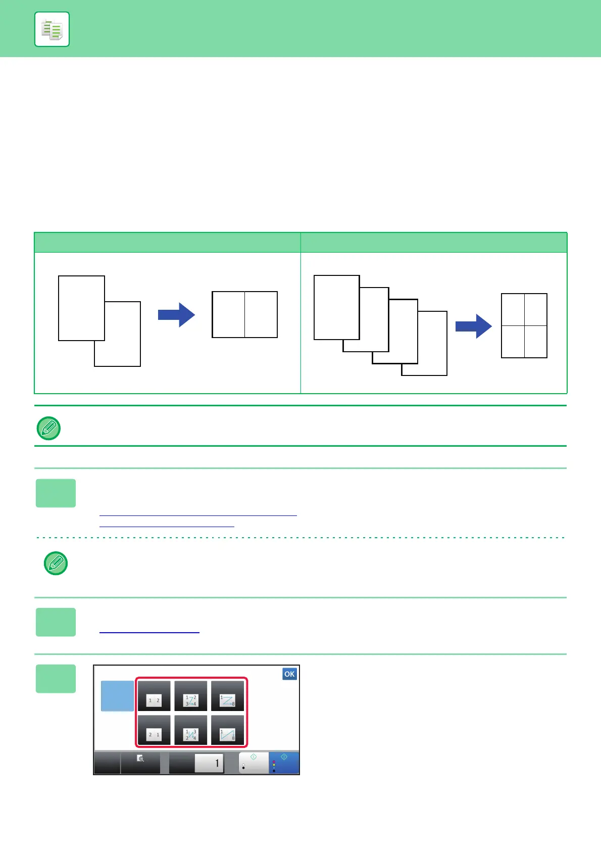 This function copies multiple original pages onto a single sheet of paper in a uniform layout.