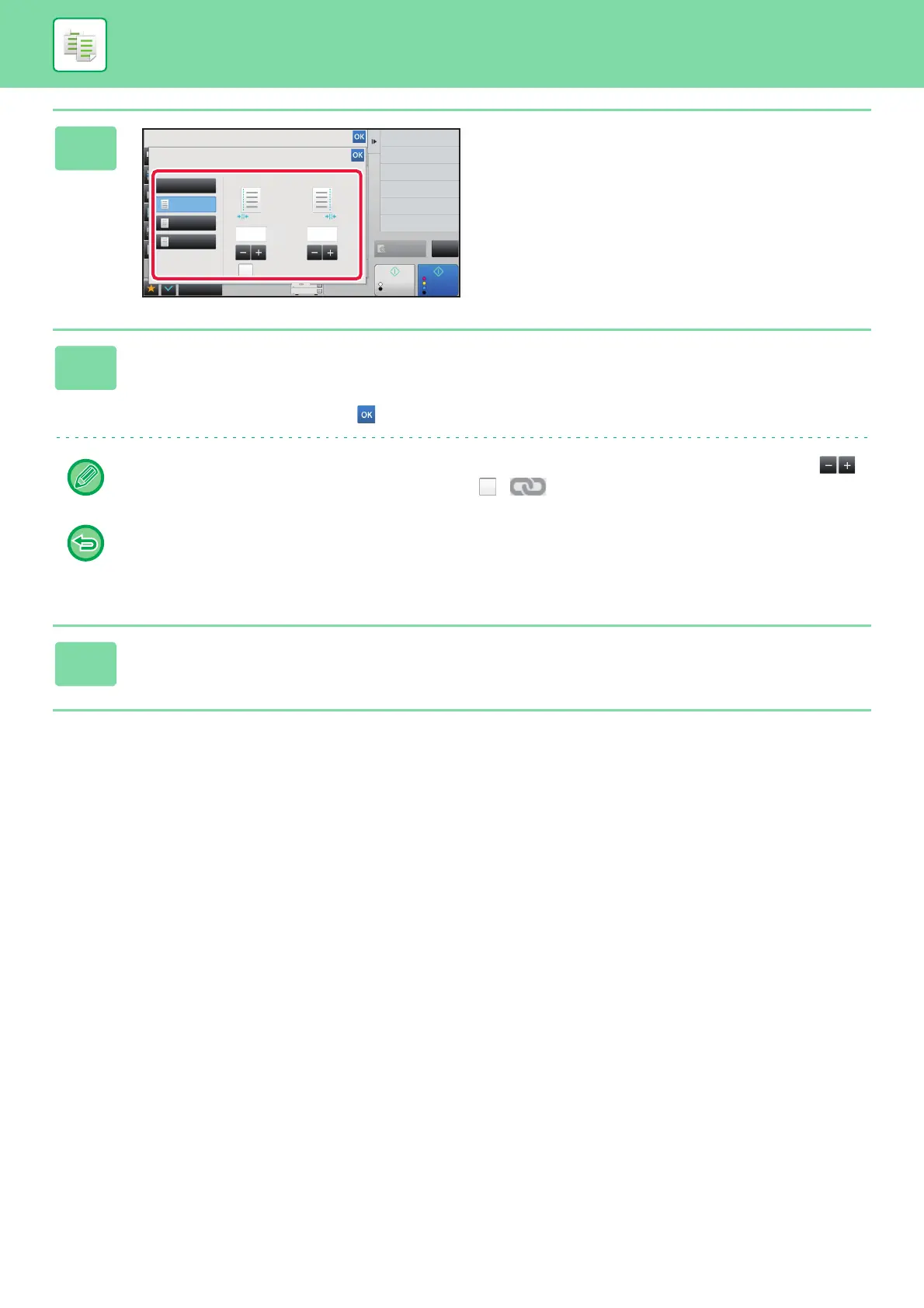 Tap the numeric value display indicating the margin shift area on the front side or reverse side, and enter the area using