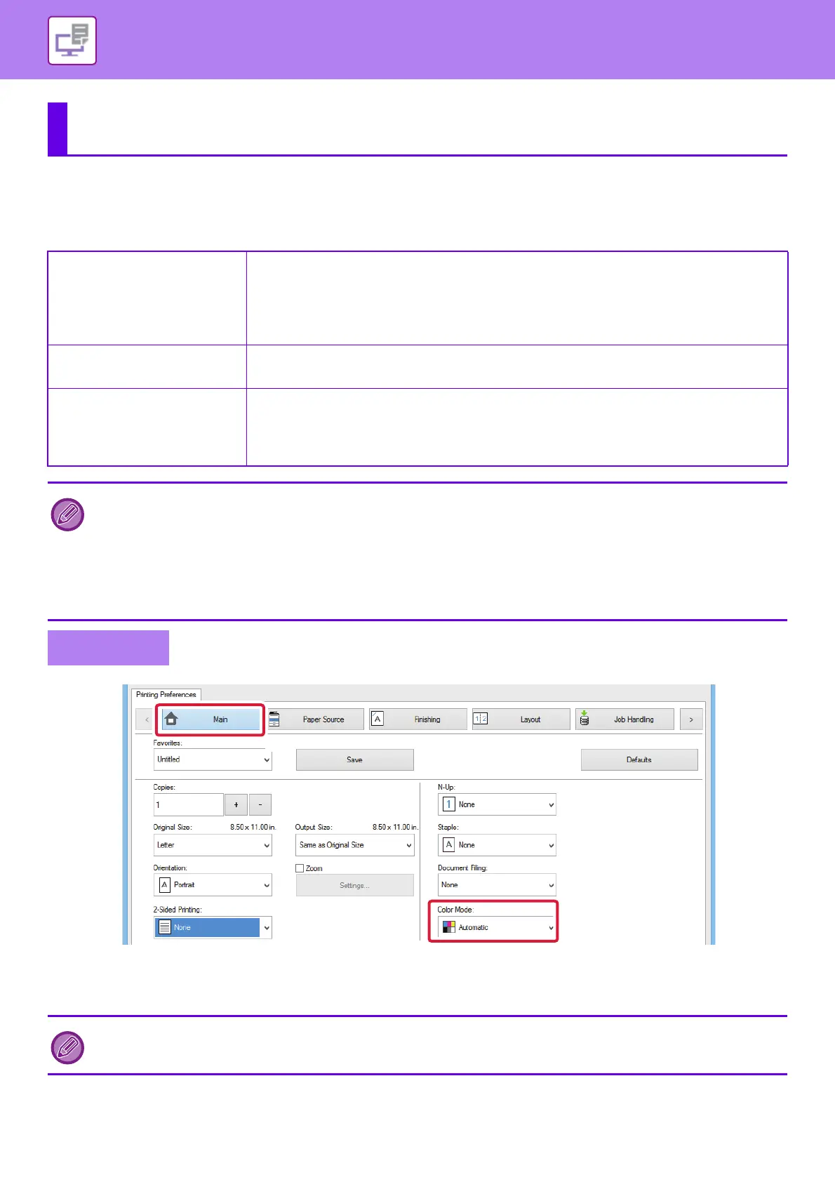 presentation are printed using black toner only. This mode helps conserve colour toner when